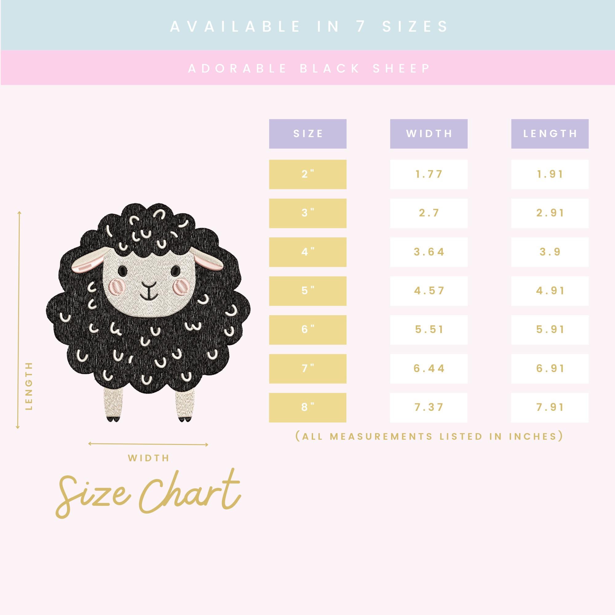 A ZIP file containing 7 sizes of the Adorable Black Sheep design: