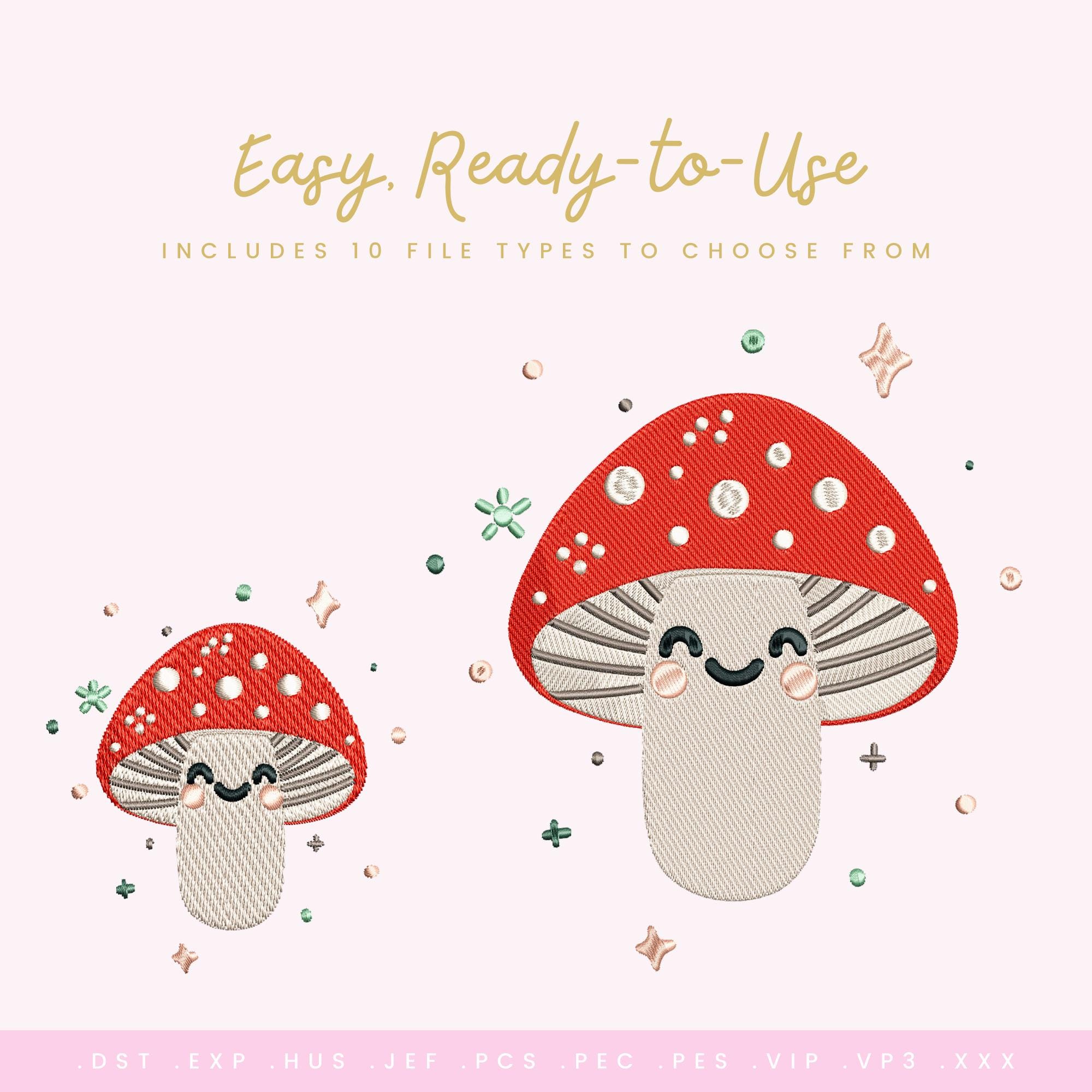 Add a dose of joy and whimsy to your embroidery projects with this adorable cheerful toadstool design. Featuring a smiling mushroom with playful details and soft stitched textures, this design is perfect for children’s clothing, nursery décor, bags, quilts, and charming handmade gifts.