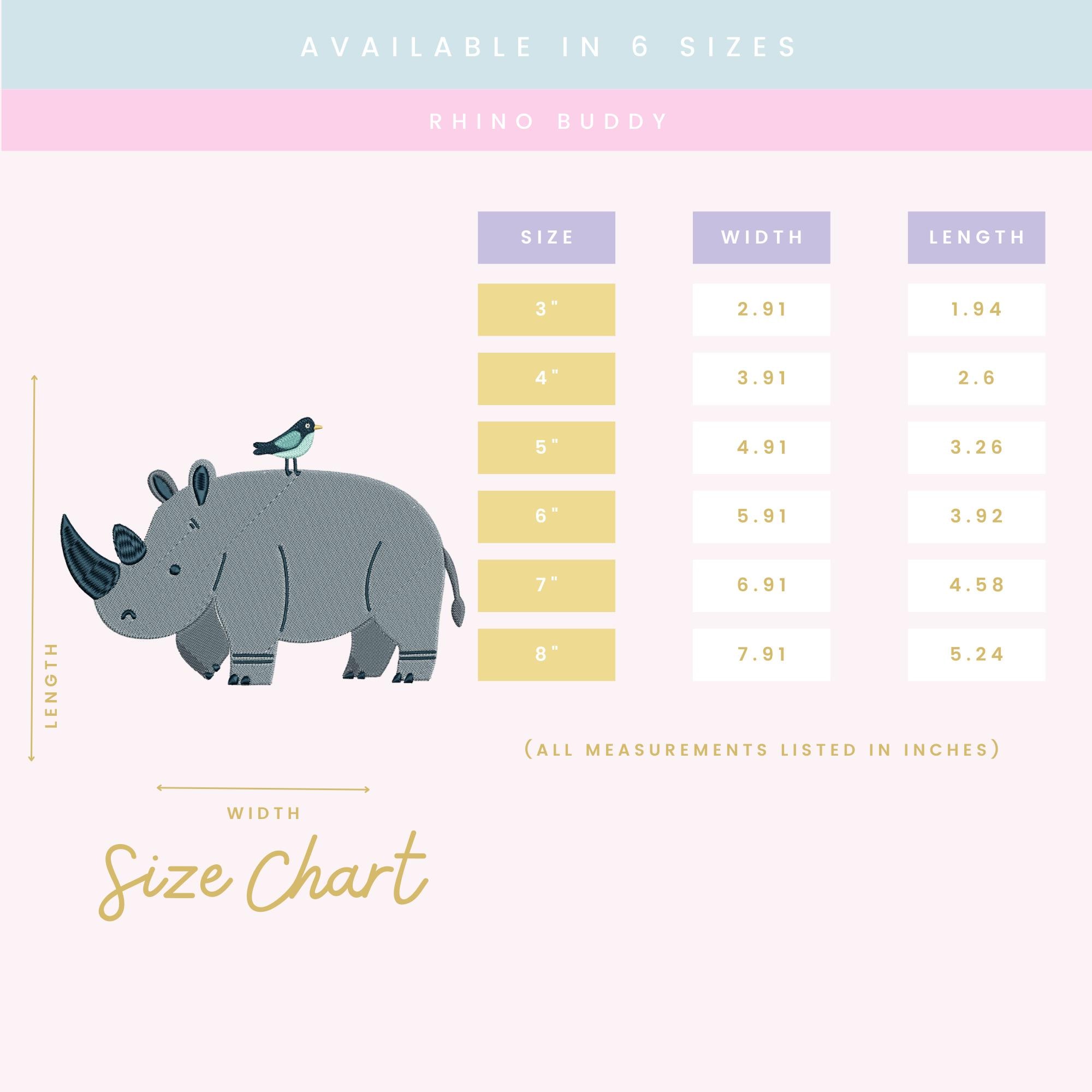 Rhino Buddy – Machine Embroidery Design (6 Sizes Included!) Cute Rhino Stitch File • Animal Embroidery • Nursery Friendly • Instant Download