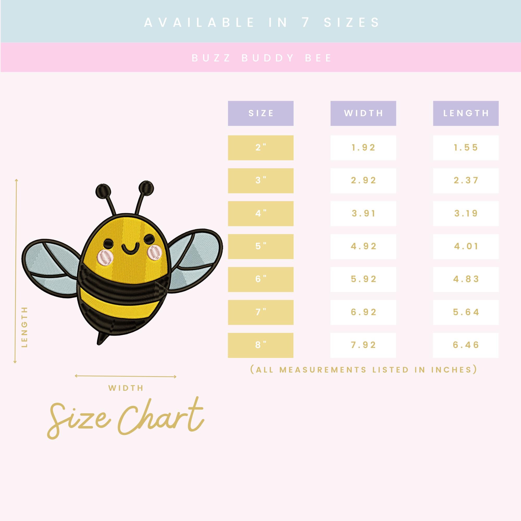 Buzz Buddy Bee – Machine Embroidery Design (7 Sizes Included!) Cute Bee Stitch File • Kids Embroidery • Spring & Summer Embroidery • Instant Download