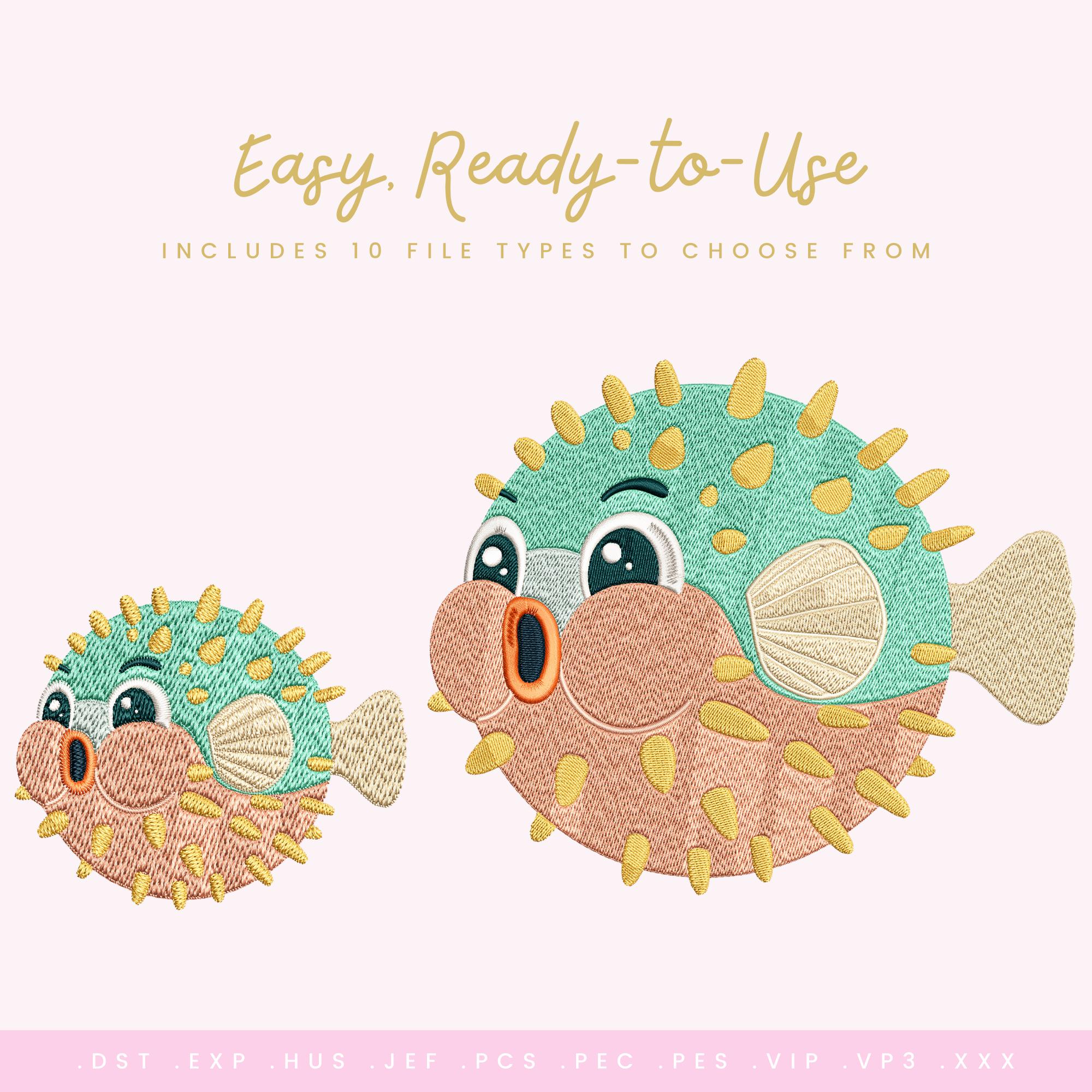 Puffy Pal Fish – Machine Embroidery Design (6 Sizes Included!) Cute Puffer Fish Stitch File • Kawaii Ocean Animal • Instant Download