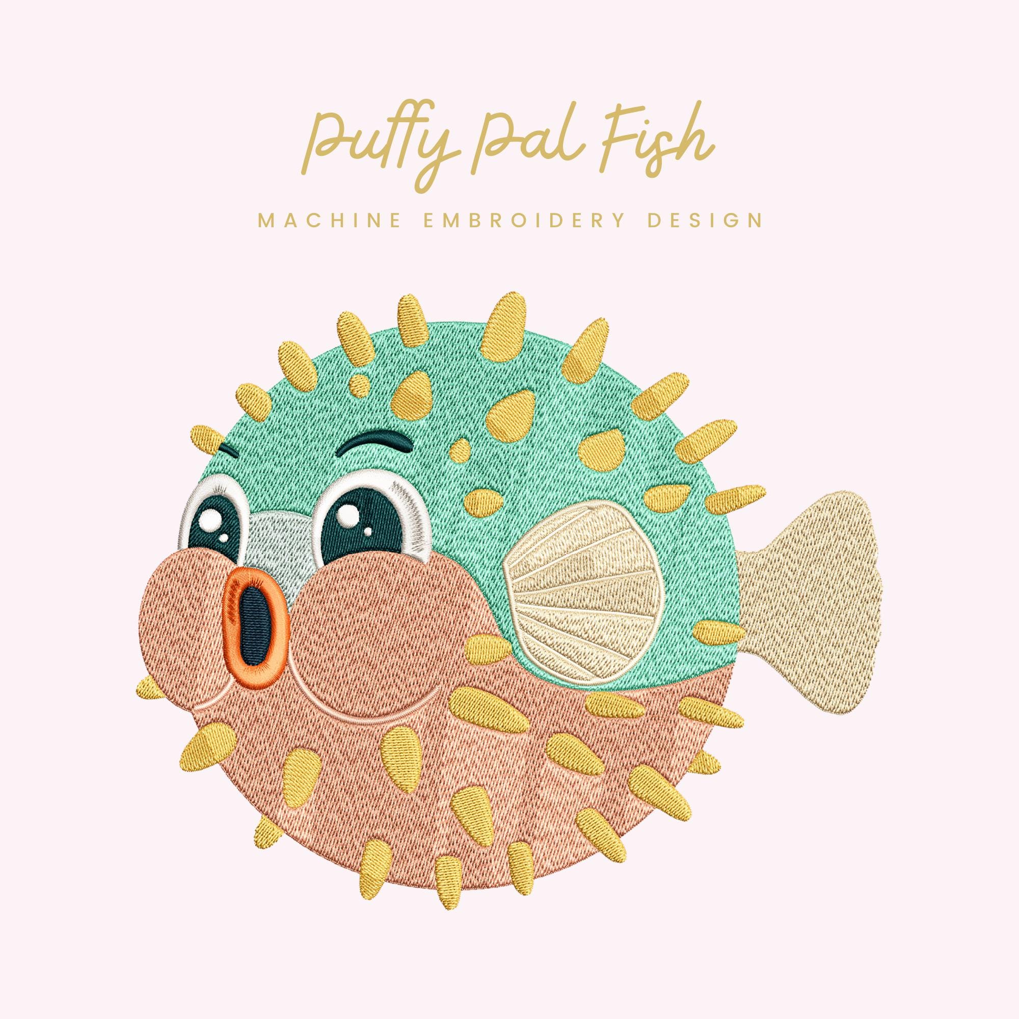 Puffy Pal Fish – Machine Embroidery Design (Instant Download!) Bring playful ocean charm to your embroidery projects with this adorable Puffy Pal Fish design. Featuring a round, expressive puffer fish with cheerful details and soft stitched texture, this design is perfect for children’s clothing, nursery décor, bags, quilts, and fun handmade gifts.