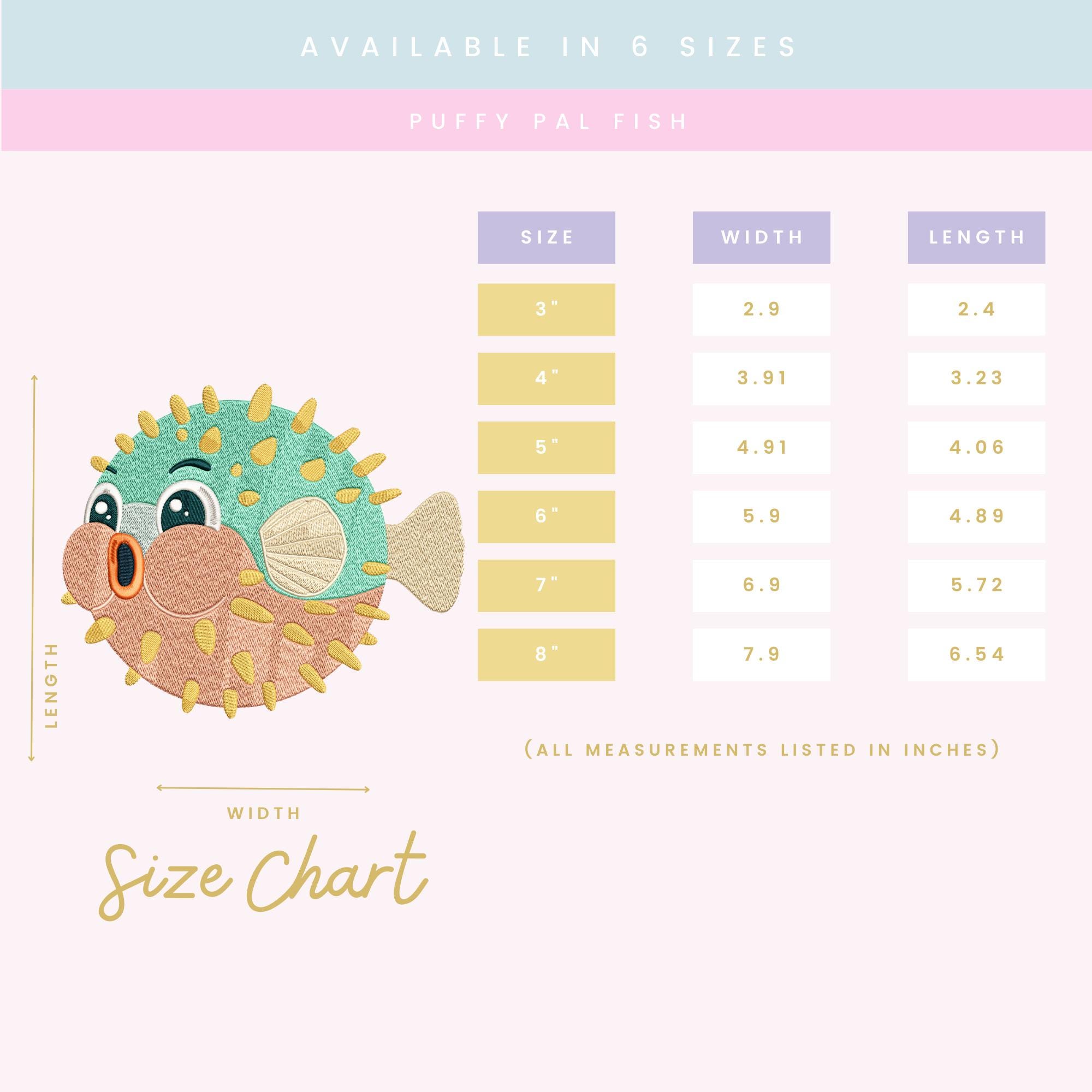 A ZIP file containing 6 sizes of the Puffy Pal Fish design: