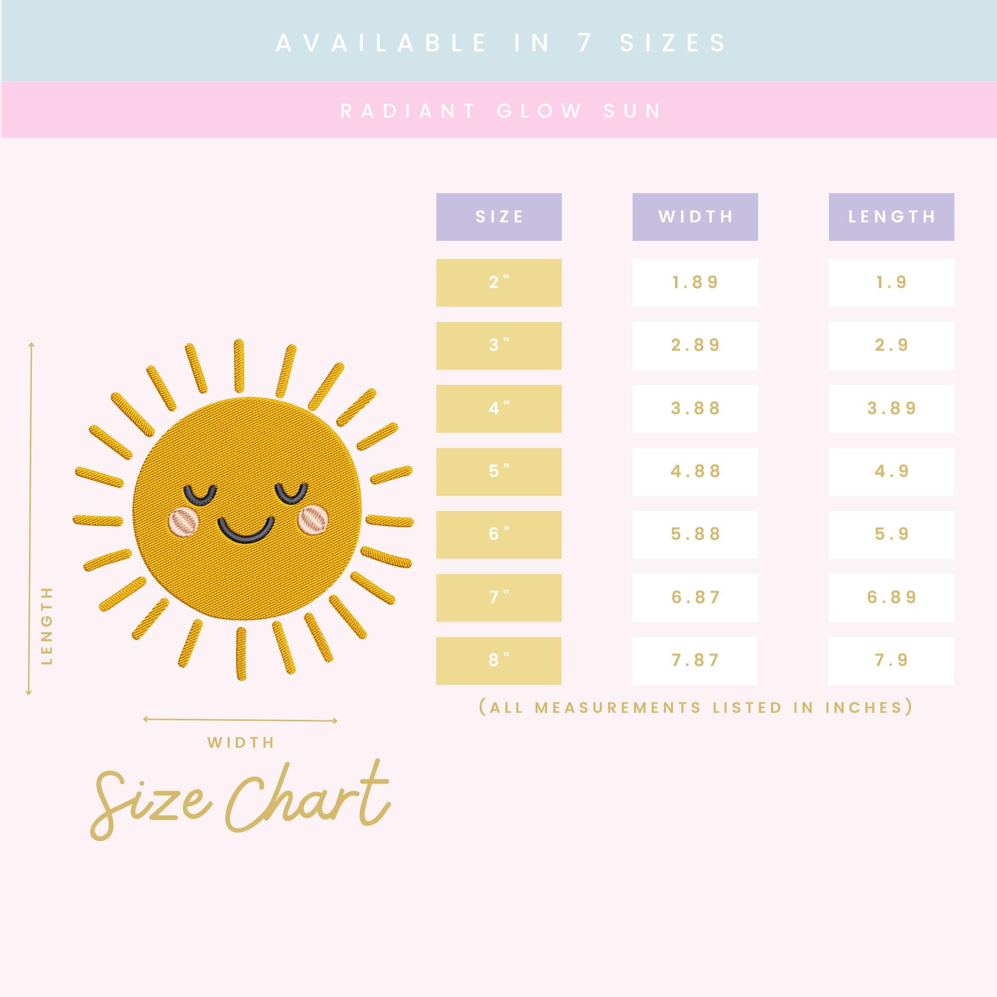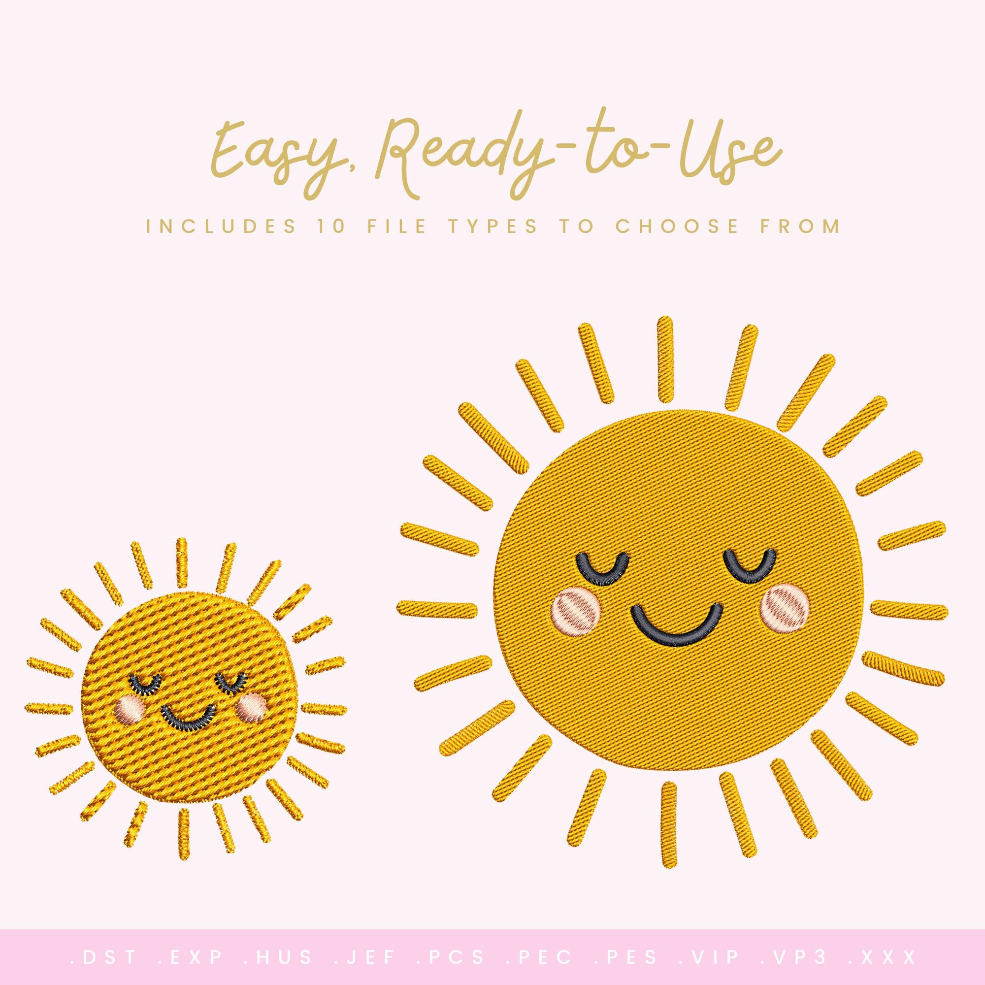 Radiant Glow Sun – Machine Embroidery Design (7 Sizes Included!) Smiling Sun Stitch File • Cute Sun Embroidery • Instant Download