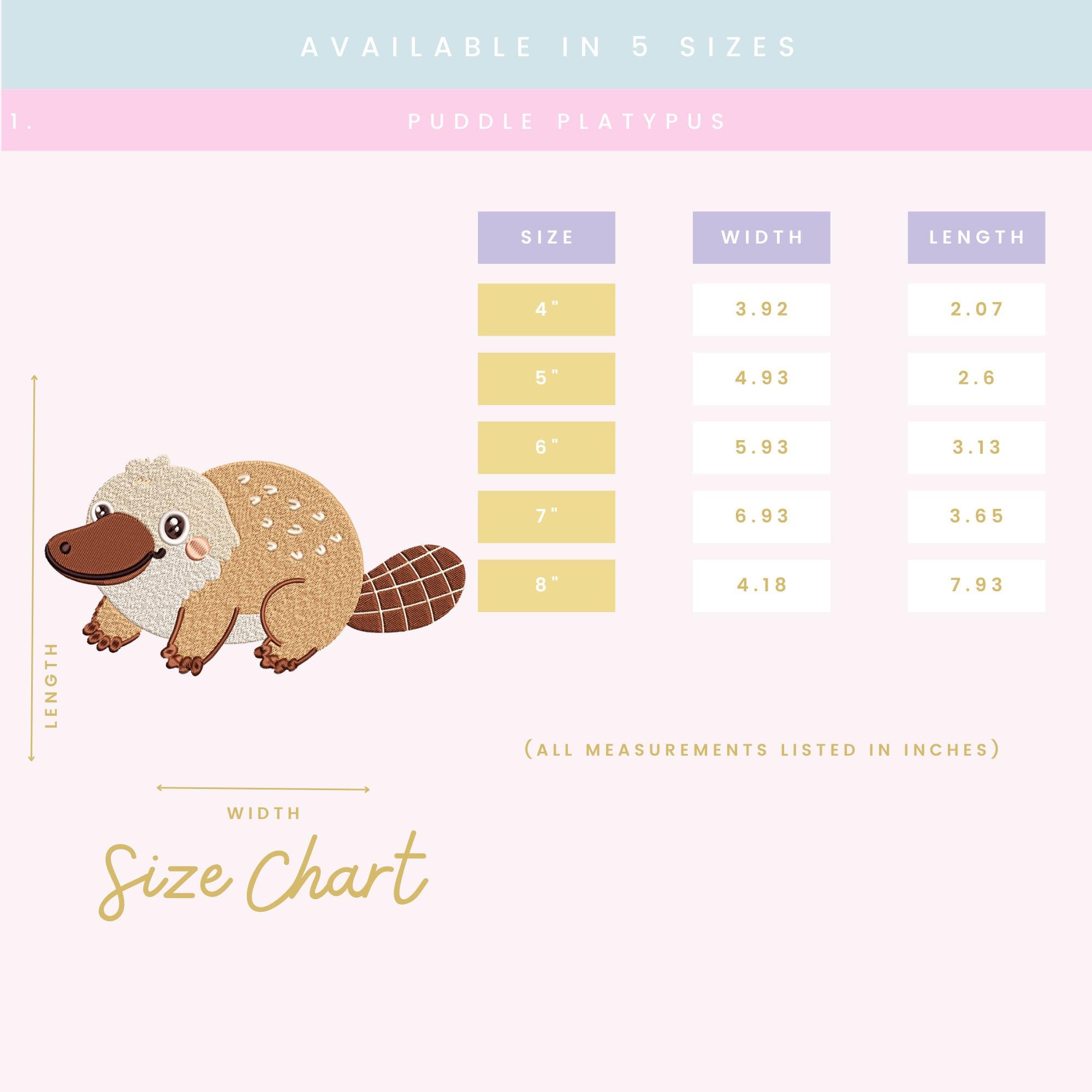 Puddle Platypus – Machine Embroidery Design (5 Sizes Included!) Cute Platypus Stitch File • Woodland Animal Embroidery • Instant Download