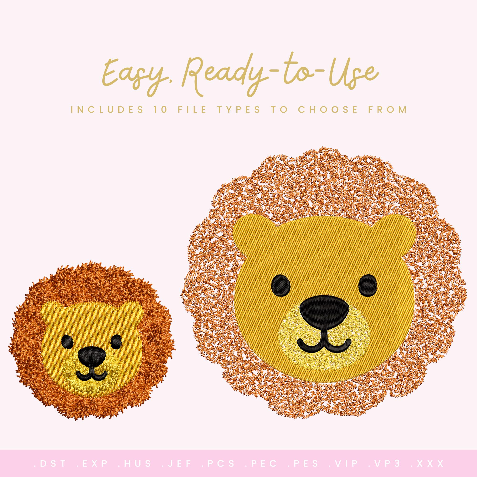 Fuzzy Lion – Machine Embroidery Design (7 Sizes Included!) Textured Mane Stitch File • Cute Animal Embroidery • Instant Download