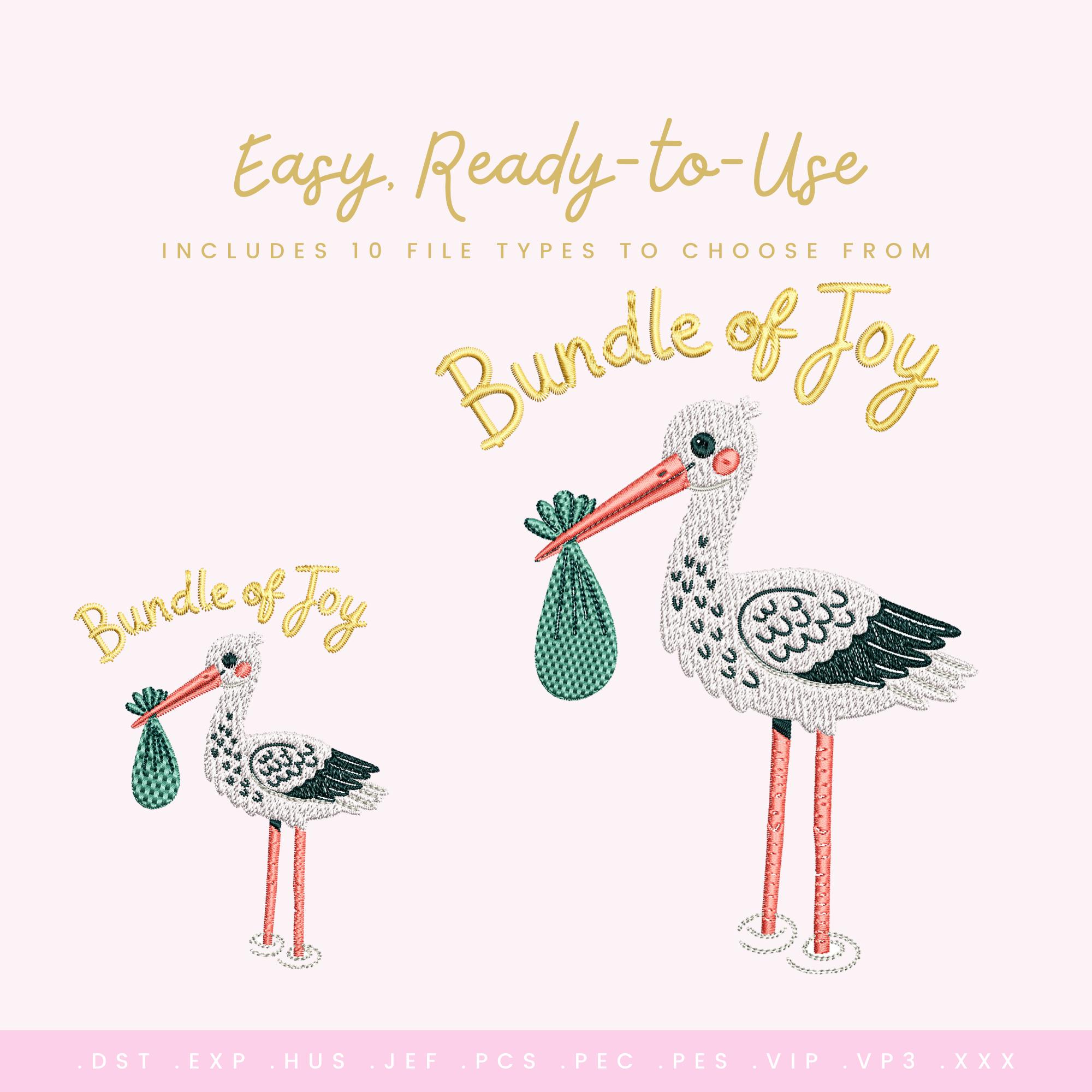 Bundle of Joy – Machine Embroidery Design (5 Sizes Included!) Stork Baby Shower Stitch File • New Baby Embroidery • Instant Download