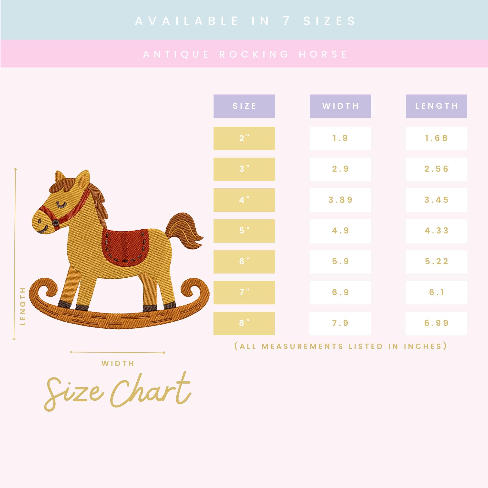 A ZIP file containing 7 sizes of the Antique Rocking Horse design:
