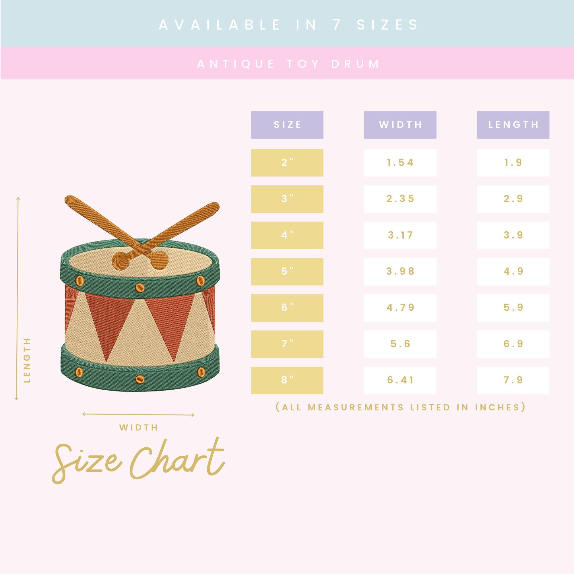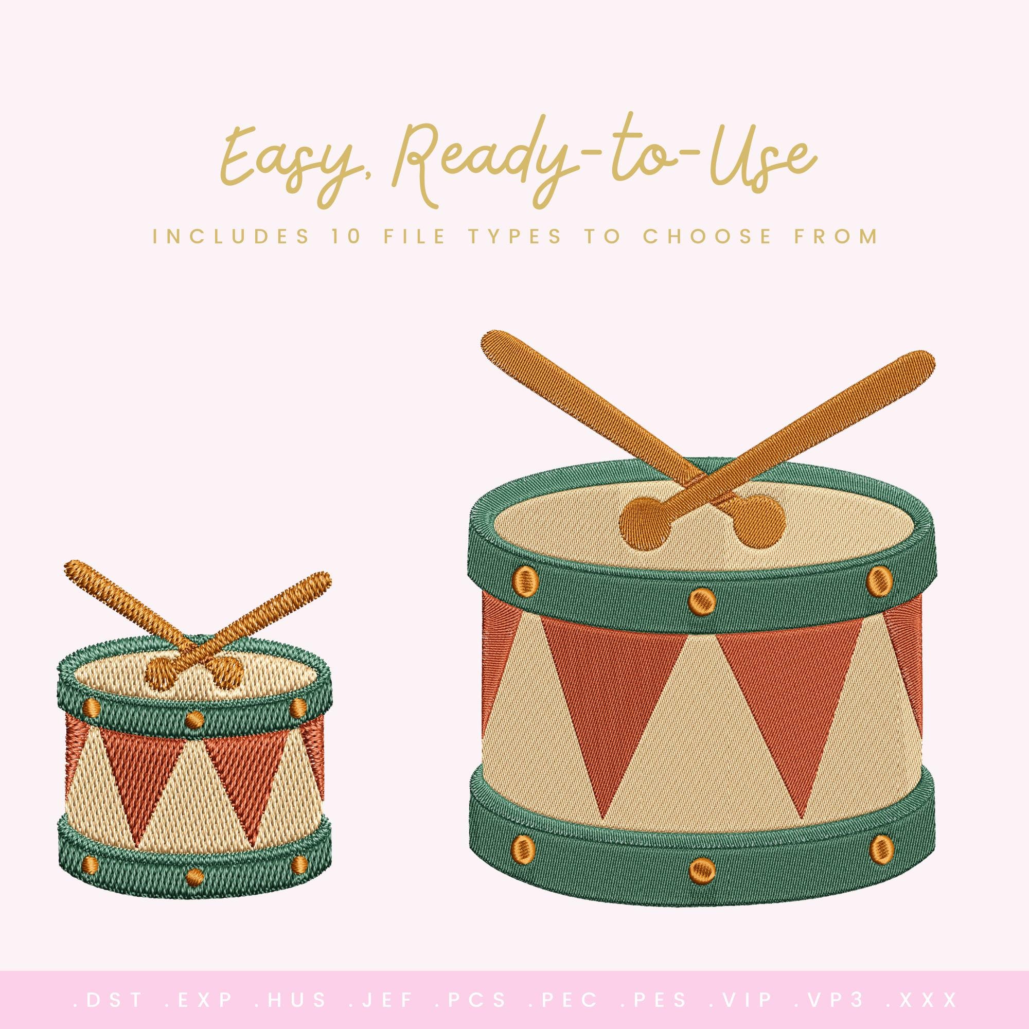 Antique Toy Drum – Machine Embroidery Design (7 Sizes!) Vintage Drum Stitch File • Holiday Toy Embroidery • Instant Download