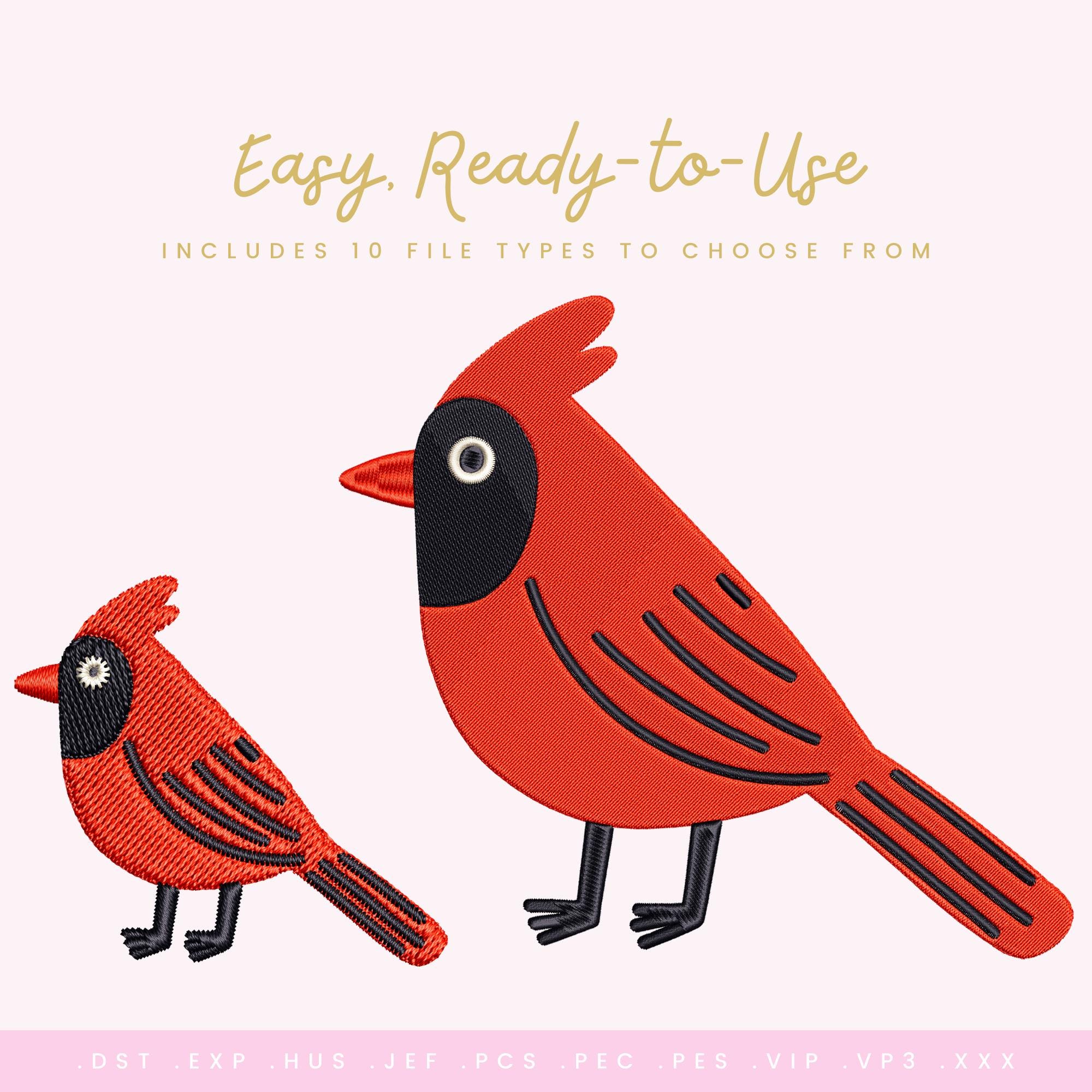 Red Cardinal Bird – Machine Embroidery Design (7 Sizes!) Winter Bird Stitch File • Holiday Cardinal Embroidery • Instant Download