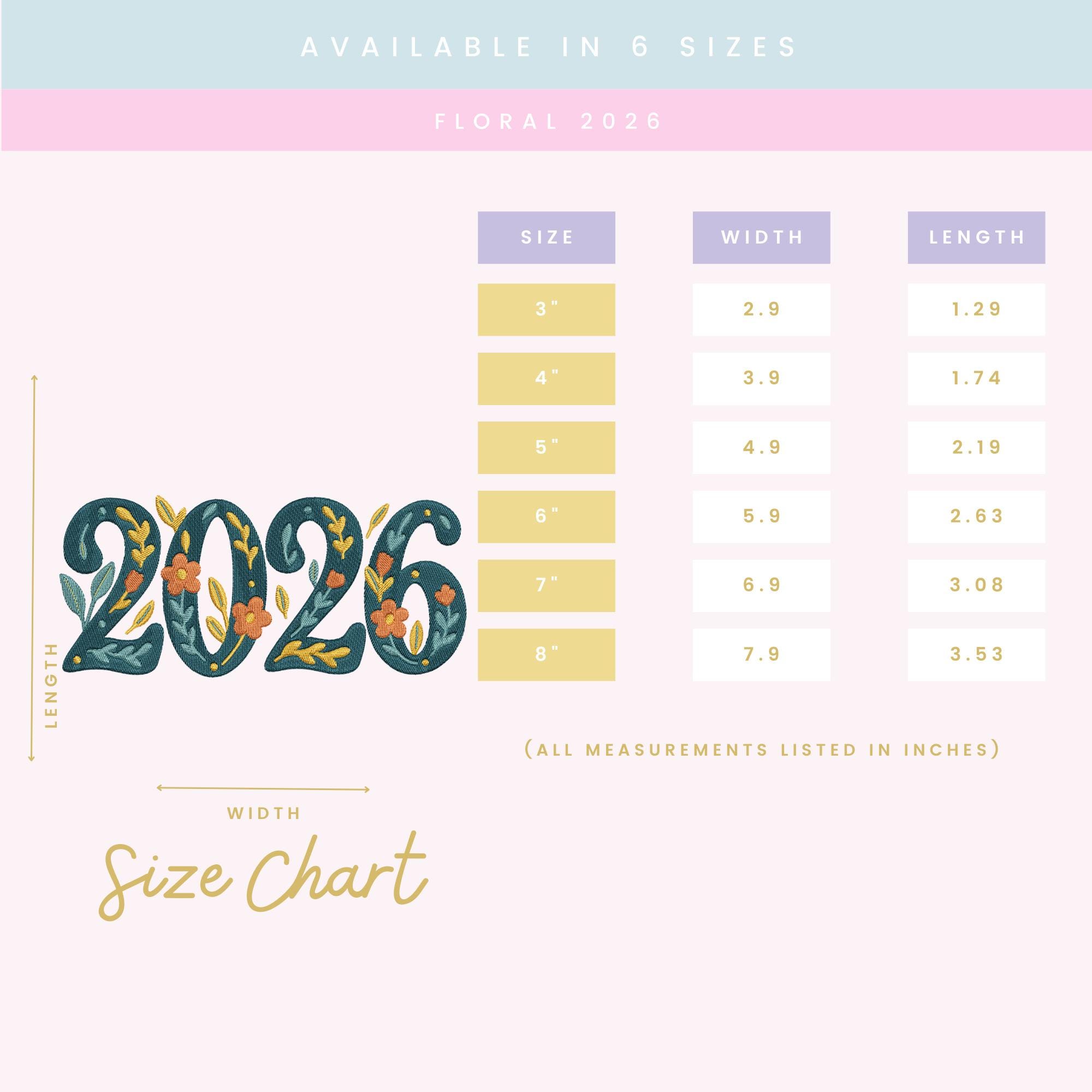 A ZIP file containing 6 sizes of the Floral 2026 design: