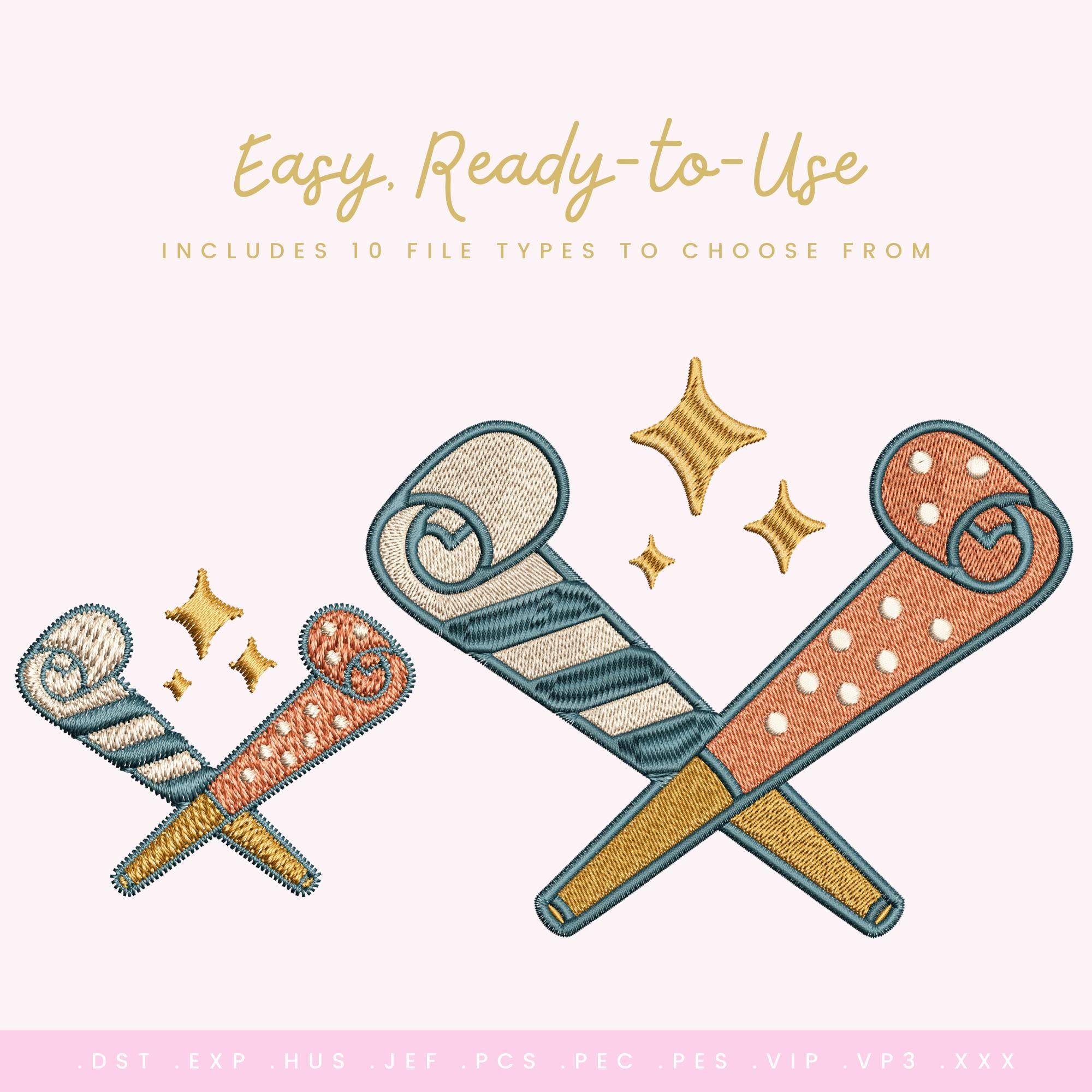 Noise Makers – Machine Embroidery Design (7 Sizes Included!) Party Poppers Stitch File • Celebration Embroidery • Instant Download