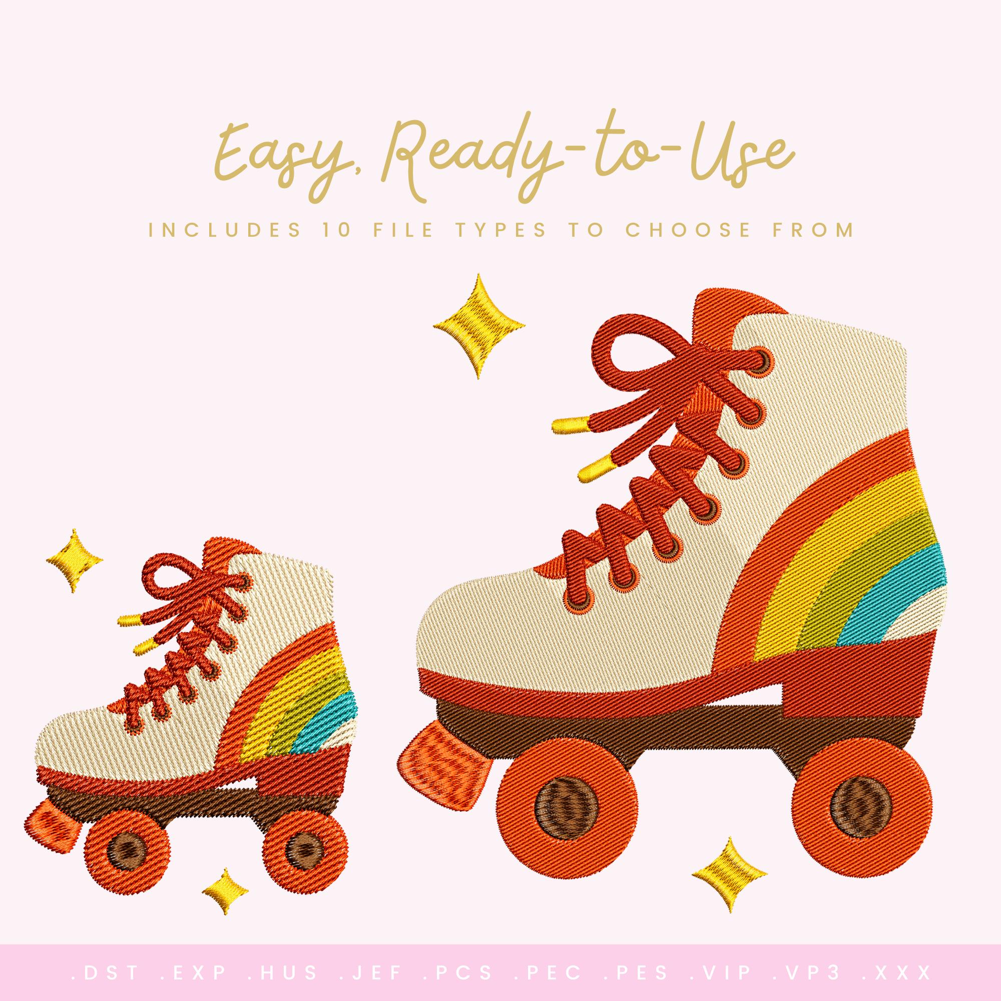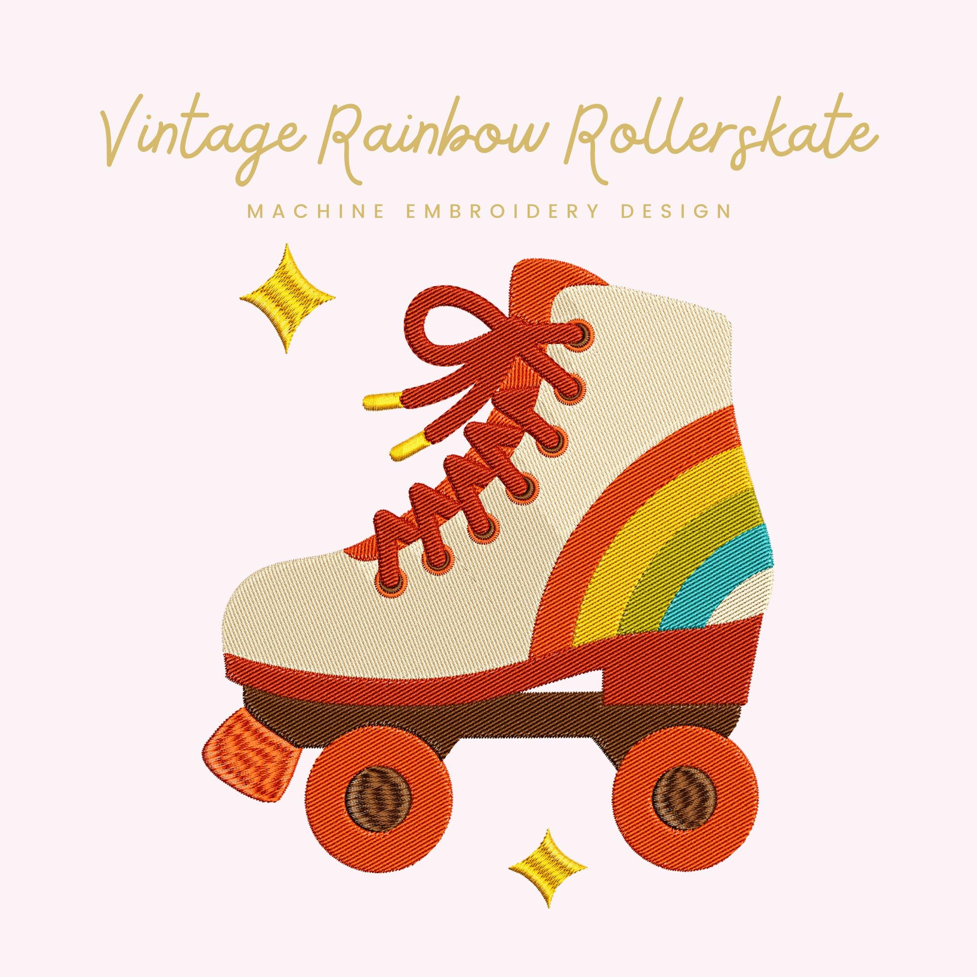 Vintage Rainbow Rollerskate – Machine Embroidery Design (Instant Download!)