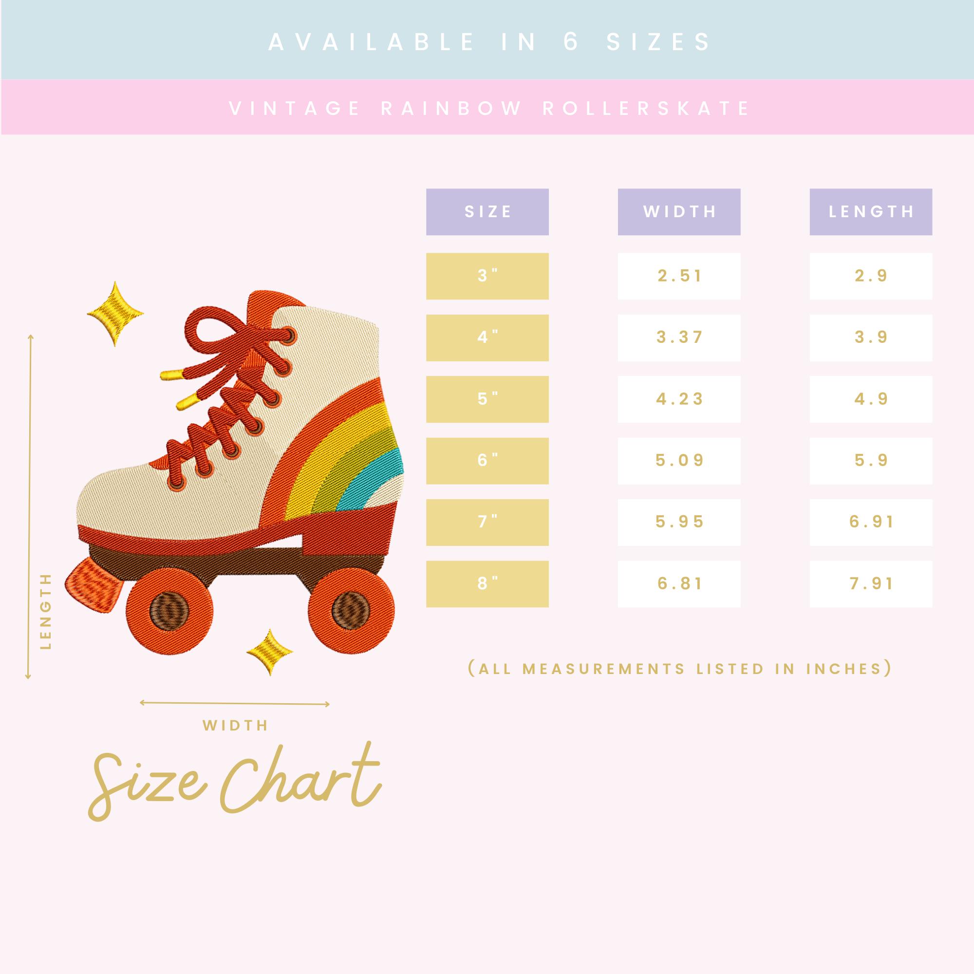 A ZIP file containing 6 sizes of the Vintage Rainbow Rollerskate design: