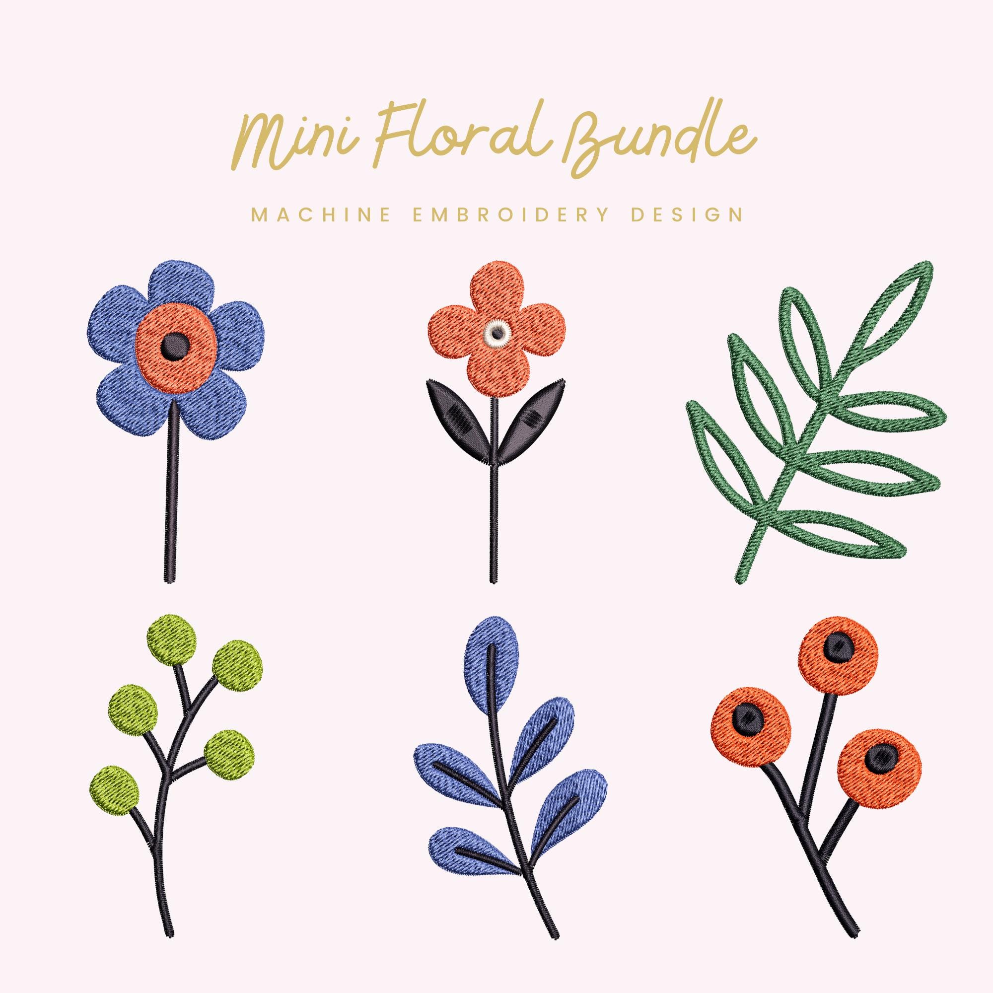 Add a sweet, modern botanical touch to your embroidery projects with this charming set of mini floral motifs. This bundle includes 6 coordinating designs — perfect for small projects, labels, pockets, collars, children’s clothing, quilts, accessories, and decorative accents.