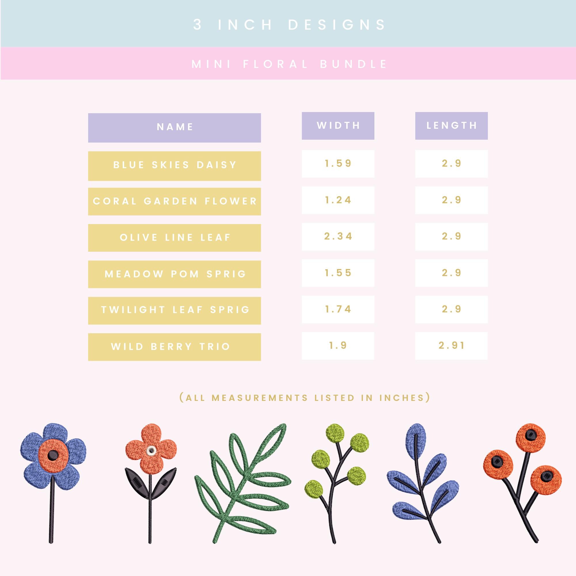 Mini Floral Bundle – Machine Embroidery Design Set (6 Designs • 3” Sizes) Floral Sprigs & Leaves • Cute Stitch Motifs • Instant Download