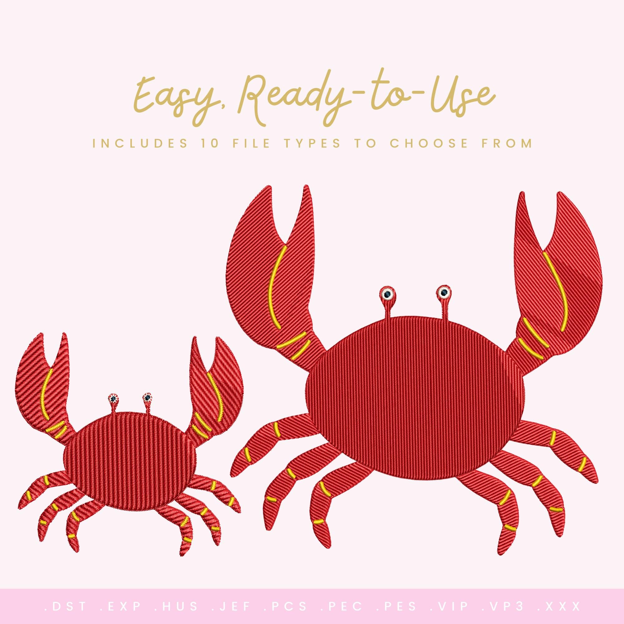 Snap up some seaside fun with this bold and playful crab embroidery design. Featuring a cheerful red crab with raised claws, bright stitched accents, and a clean, modern silhouette, this design brings instant personality to kids’ clothing, beach bags, towels, quilts, and summer-themed projects.