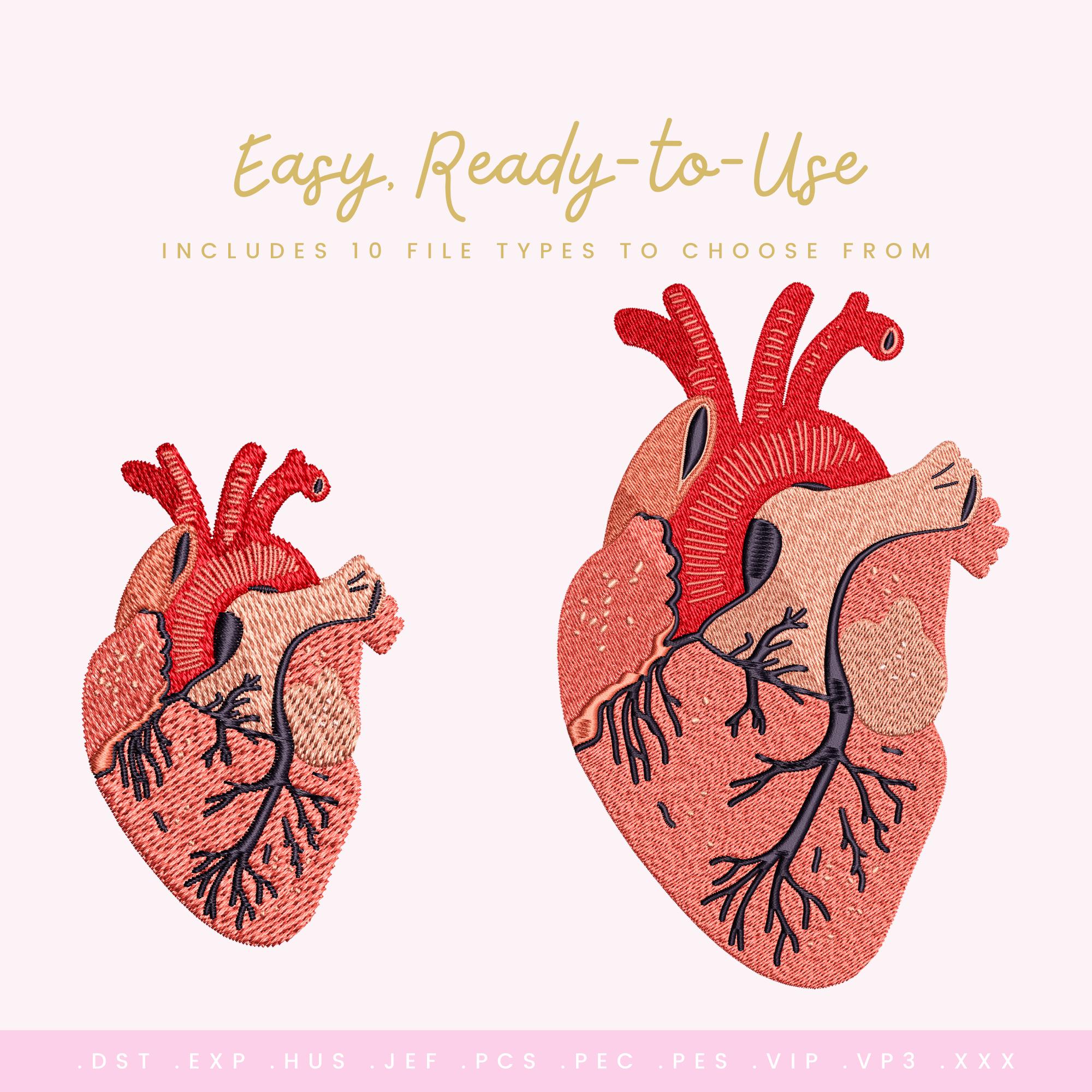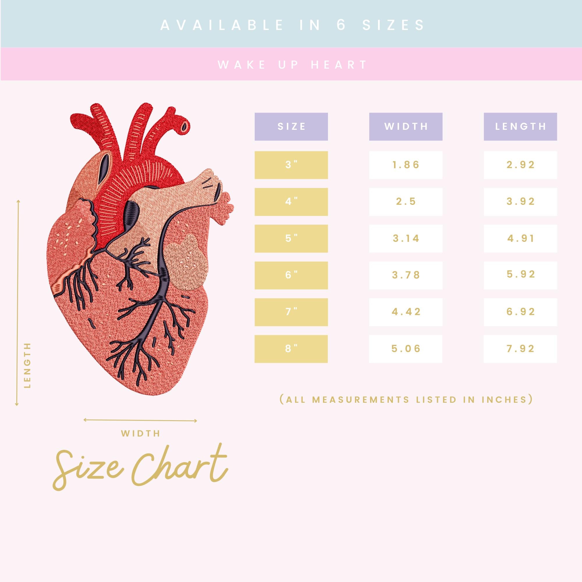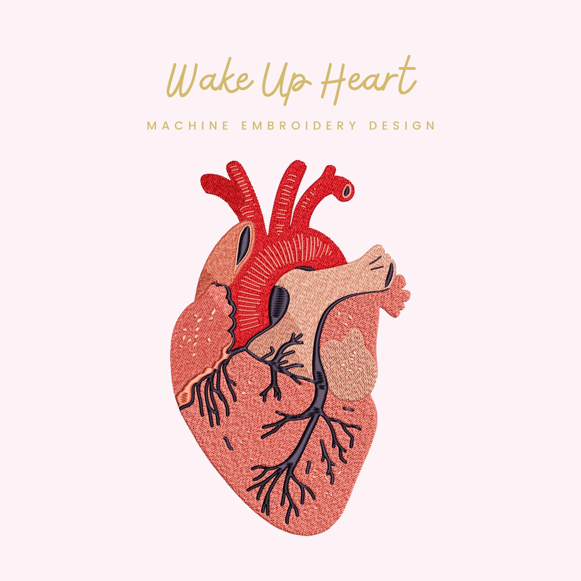 Wake Up Heart – Machine Embroidery Design (6 Sizes Included!) Anatomical Heart Stitch File • Medical & Wellness Art • Instant Download
