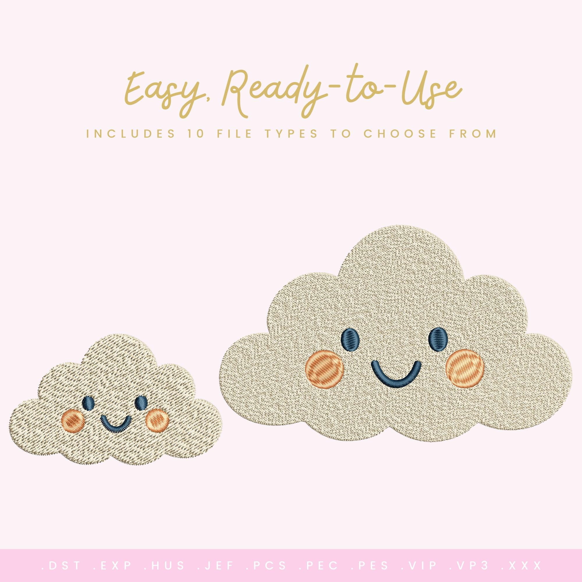 Happy Kawaii Cloud – Machine Embroidery Design (6 Sizes Included!) Cute Smiling Cloud Stitch File • Nursery Decor • Kids Embroidery • Instant Download