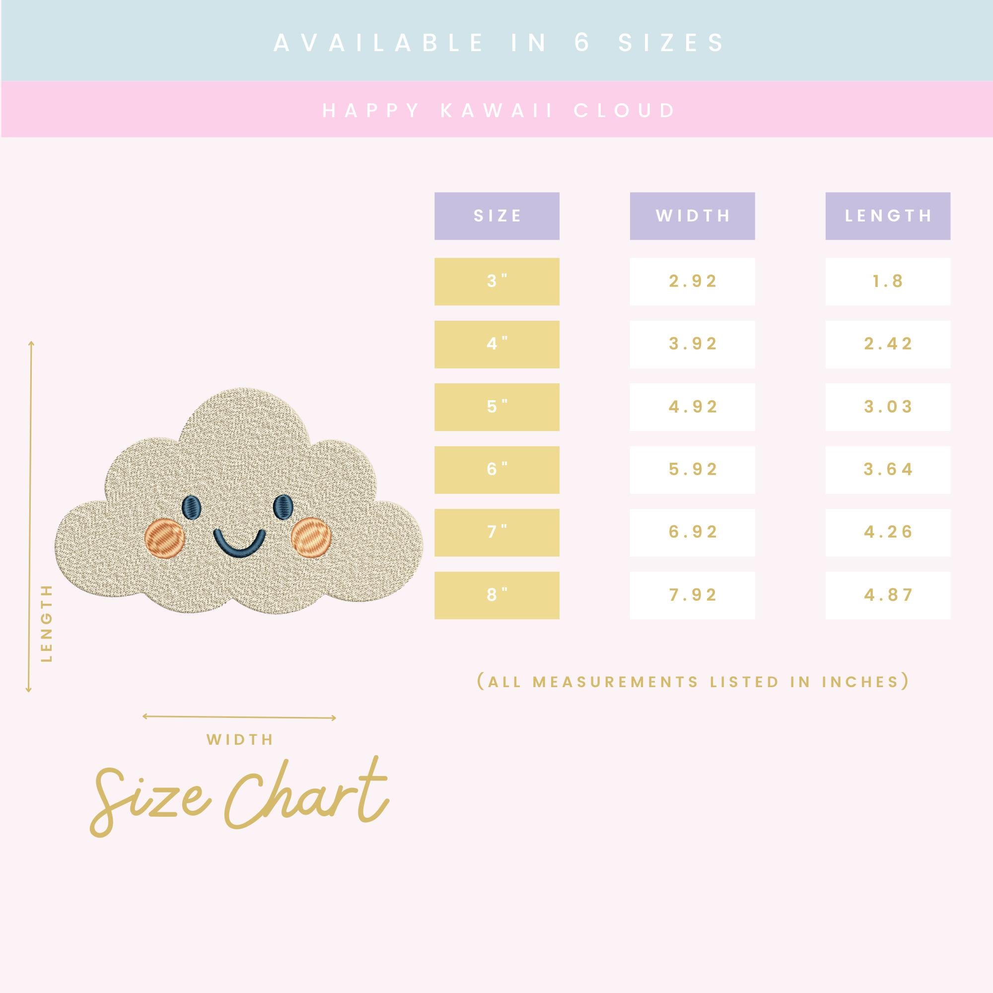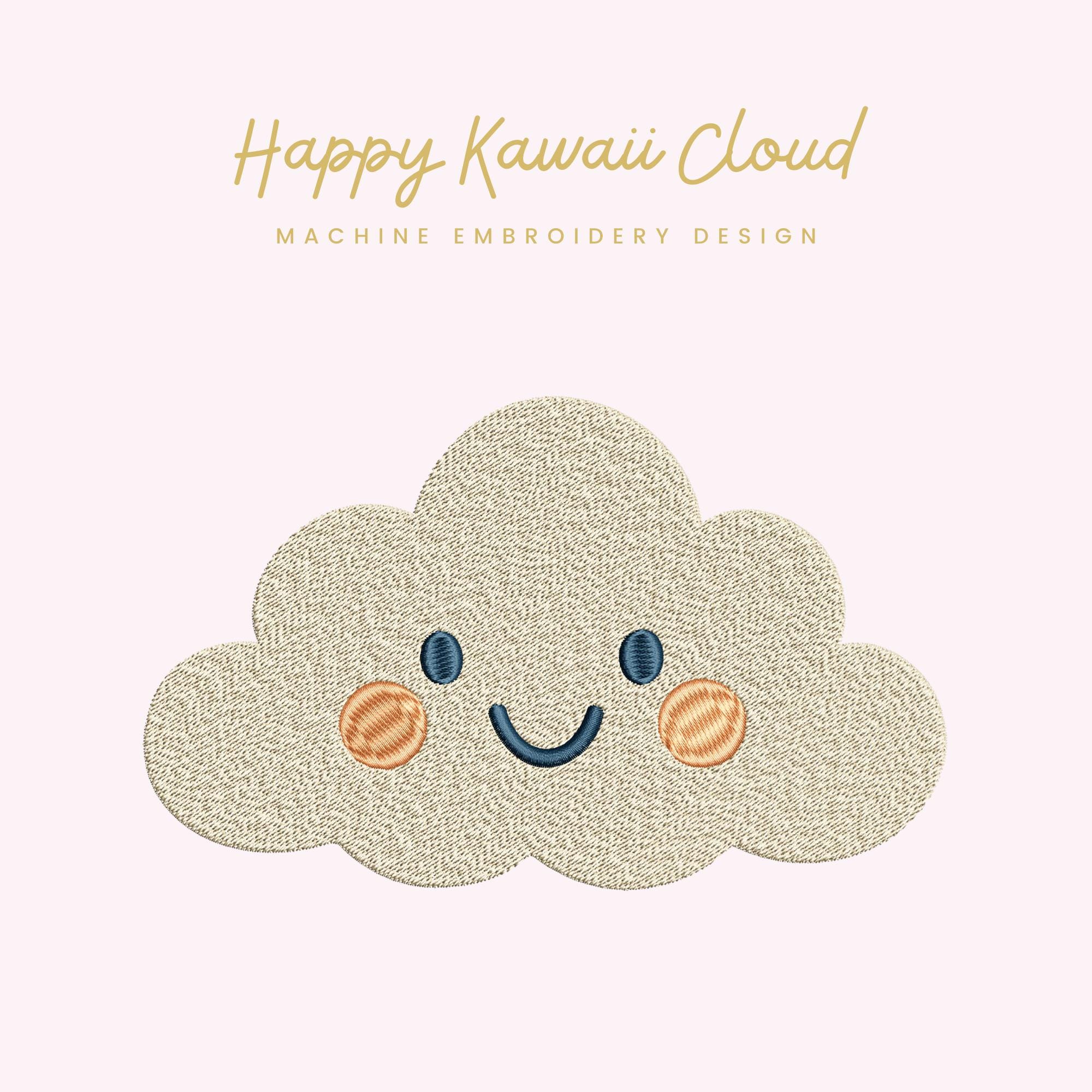 Happy Kawaii Cloud – Machine Embroidery Design (Instant Download!)