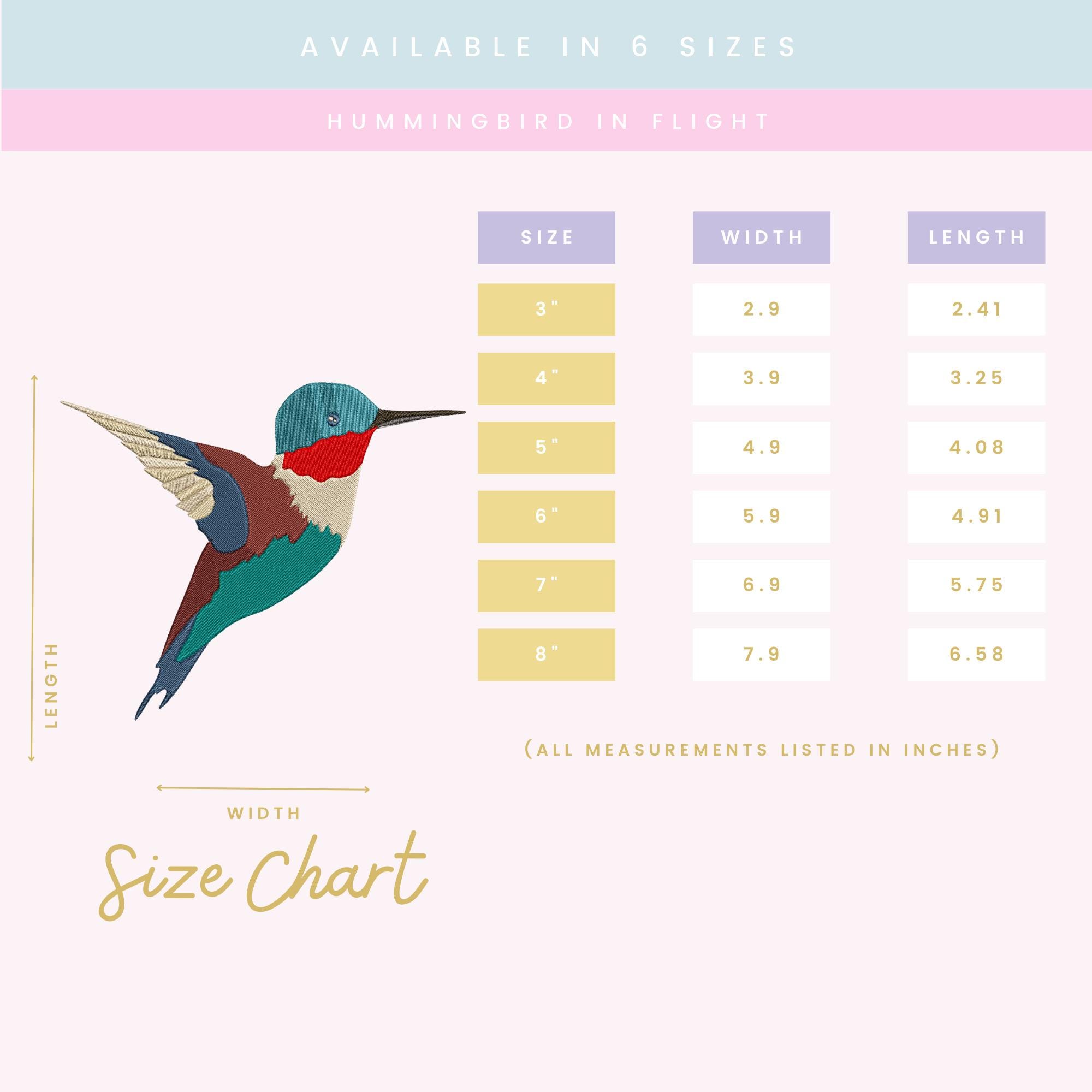 A ZIP file containing 6 sizes of the Hummingbird in Flight design:
