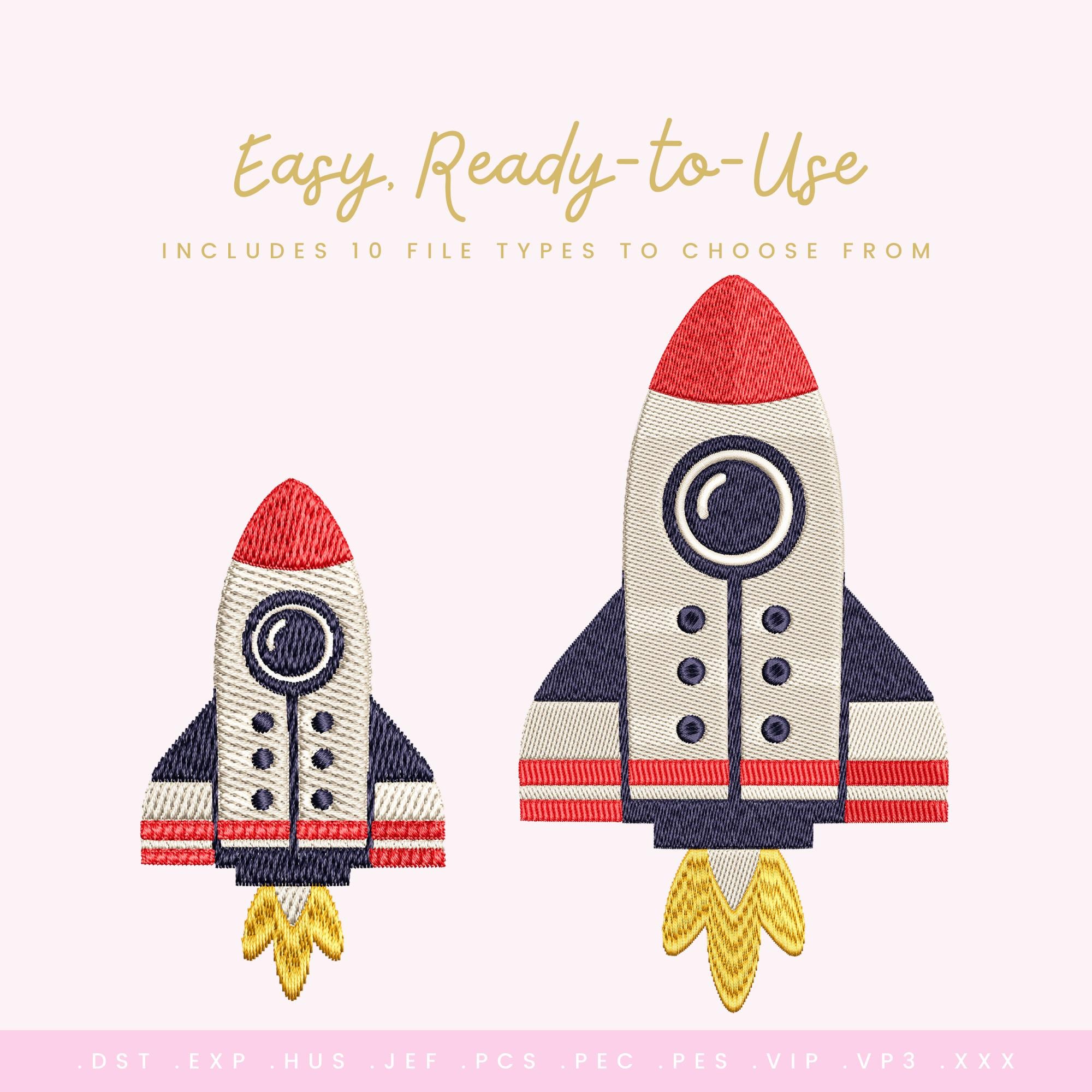 Designed with smooth stitching and balanced density, this rocket ship stitches beautifully across all included sizes, delivering a polished and professional result on a wide range of embroidery machines.