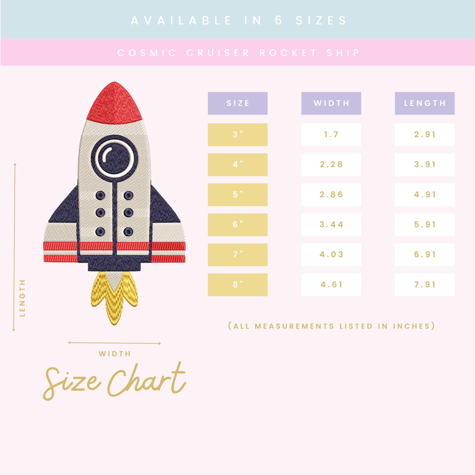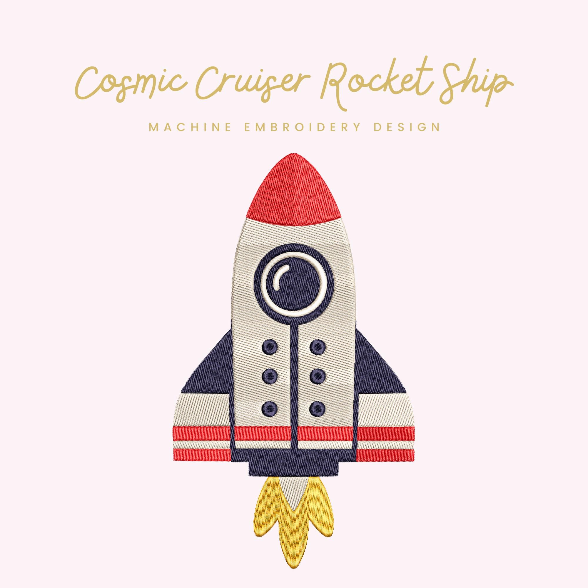 Cosmic Cruiser Rocket Ship – Machine Embroidery Design (6 Sizes Included!) Rocket Ship Stitch File • Space Embroidery • Kids Design • Instant Download