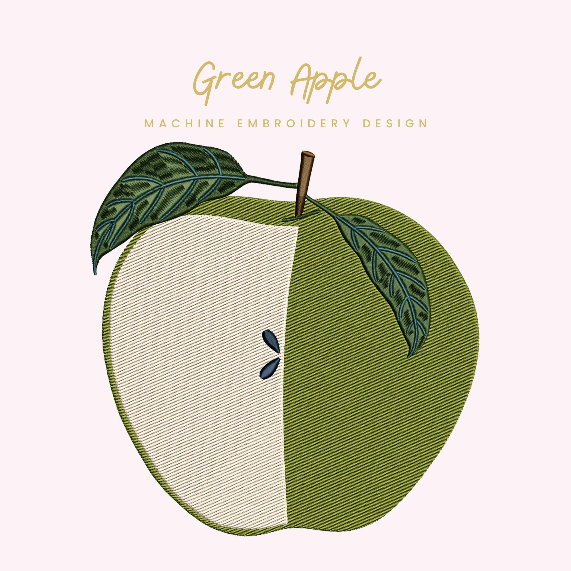 Green Apple – Machine Embroidery Design (Instant Download!)