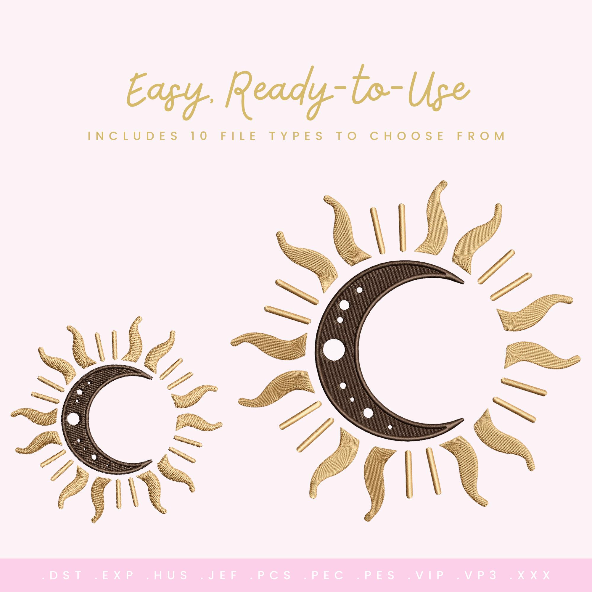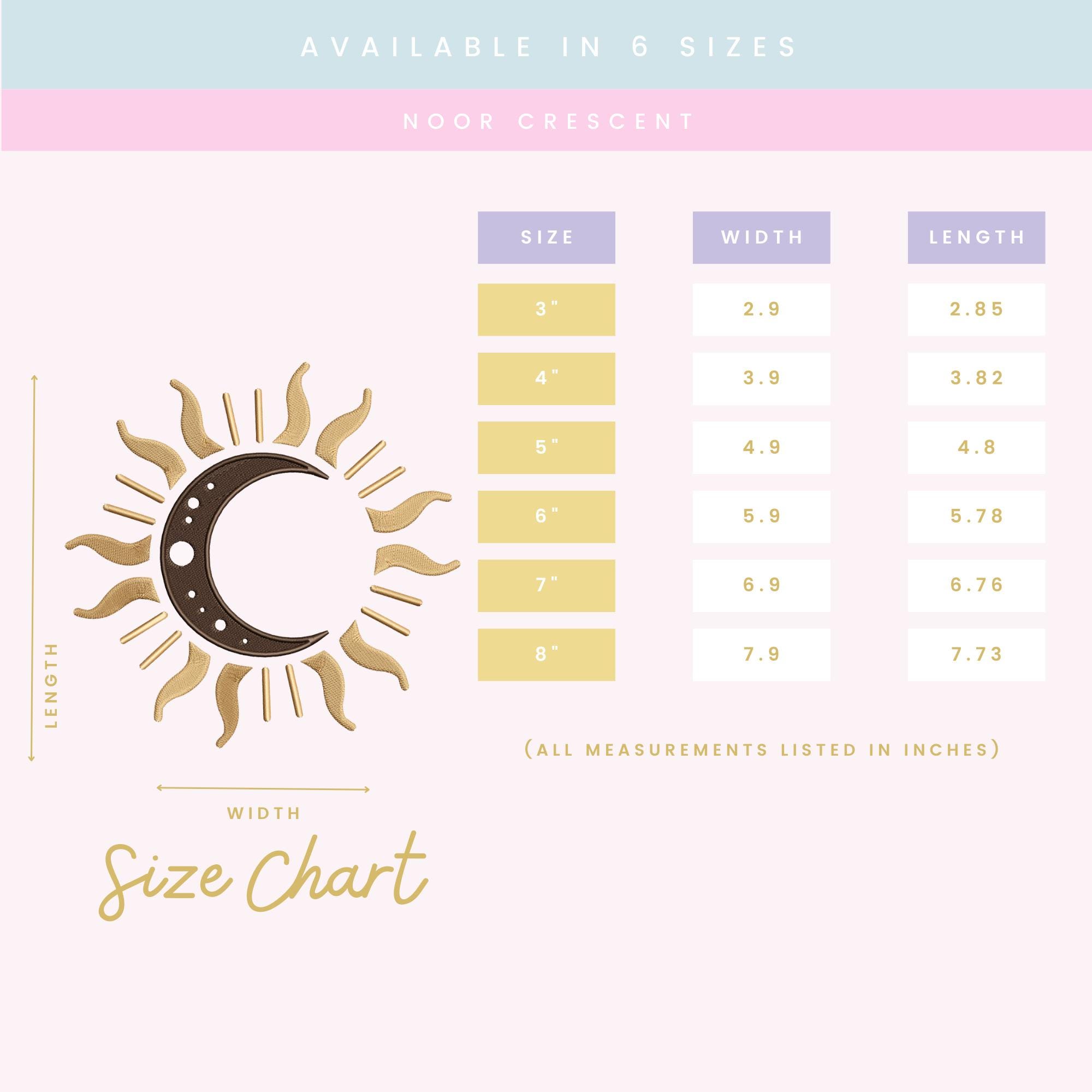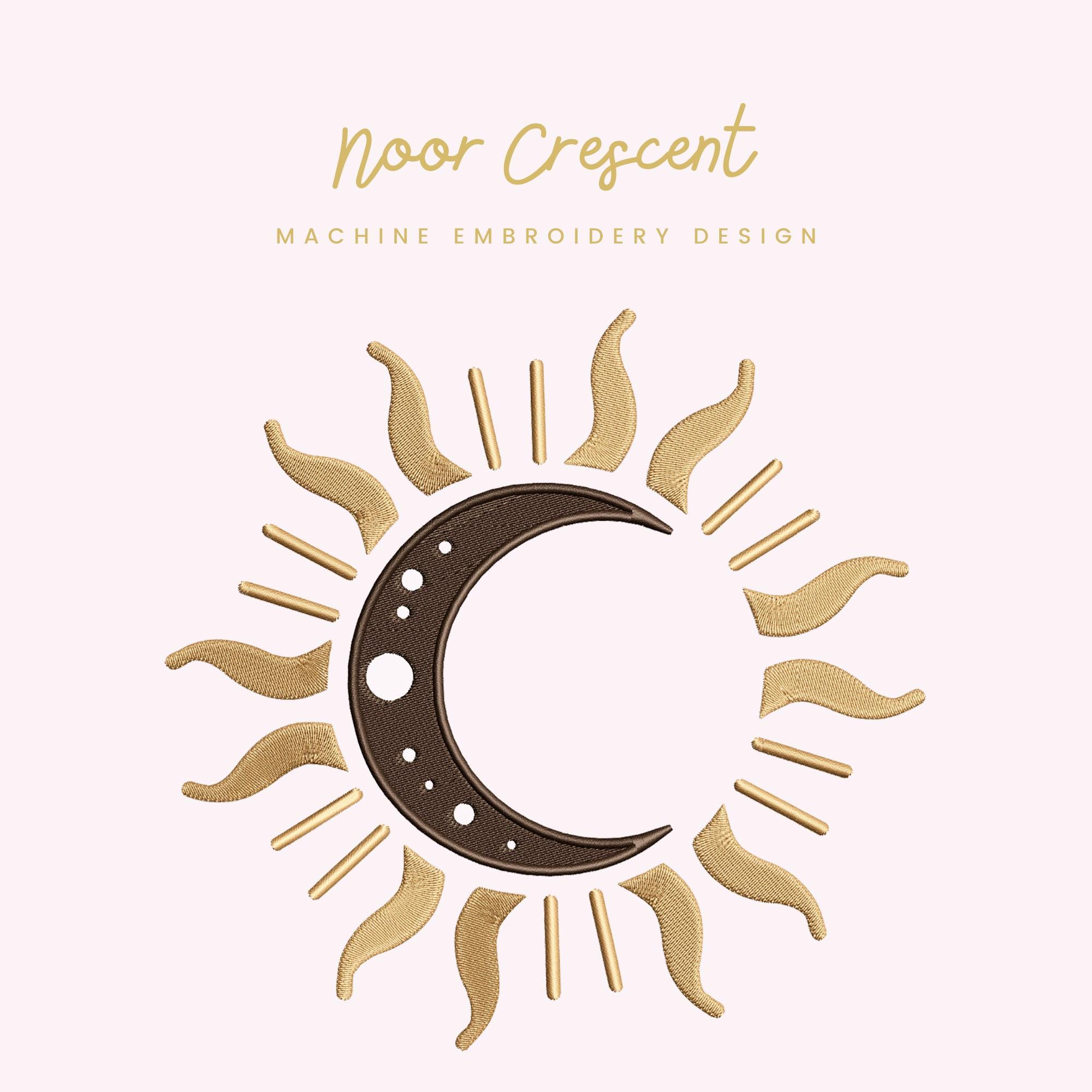 Noor Crescent – Machine Embroidery Design (6 Sizes Included!) Crescent Moon Sun Stitch File • Celestial Embroidery • Instant Download
