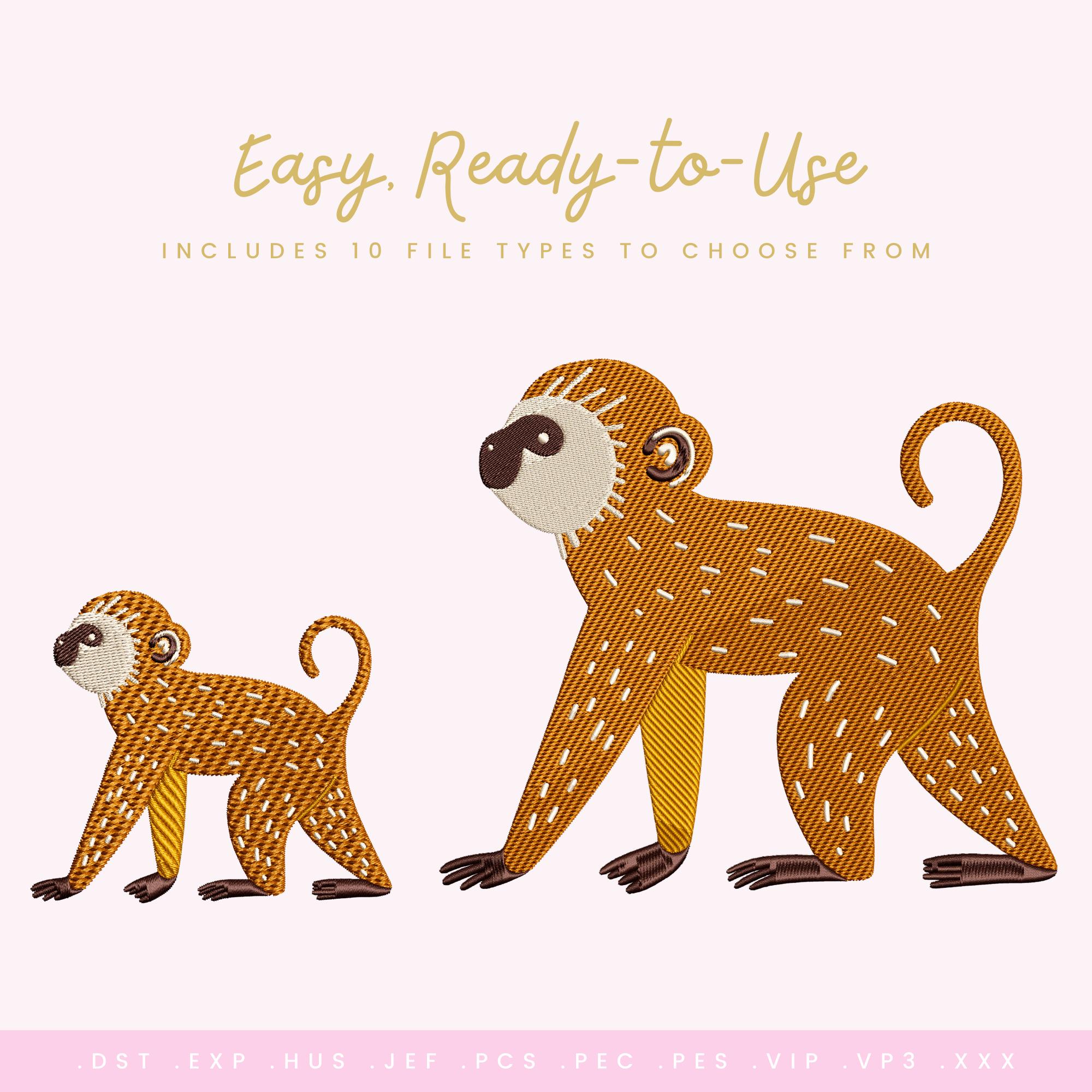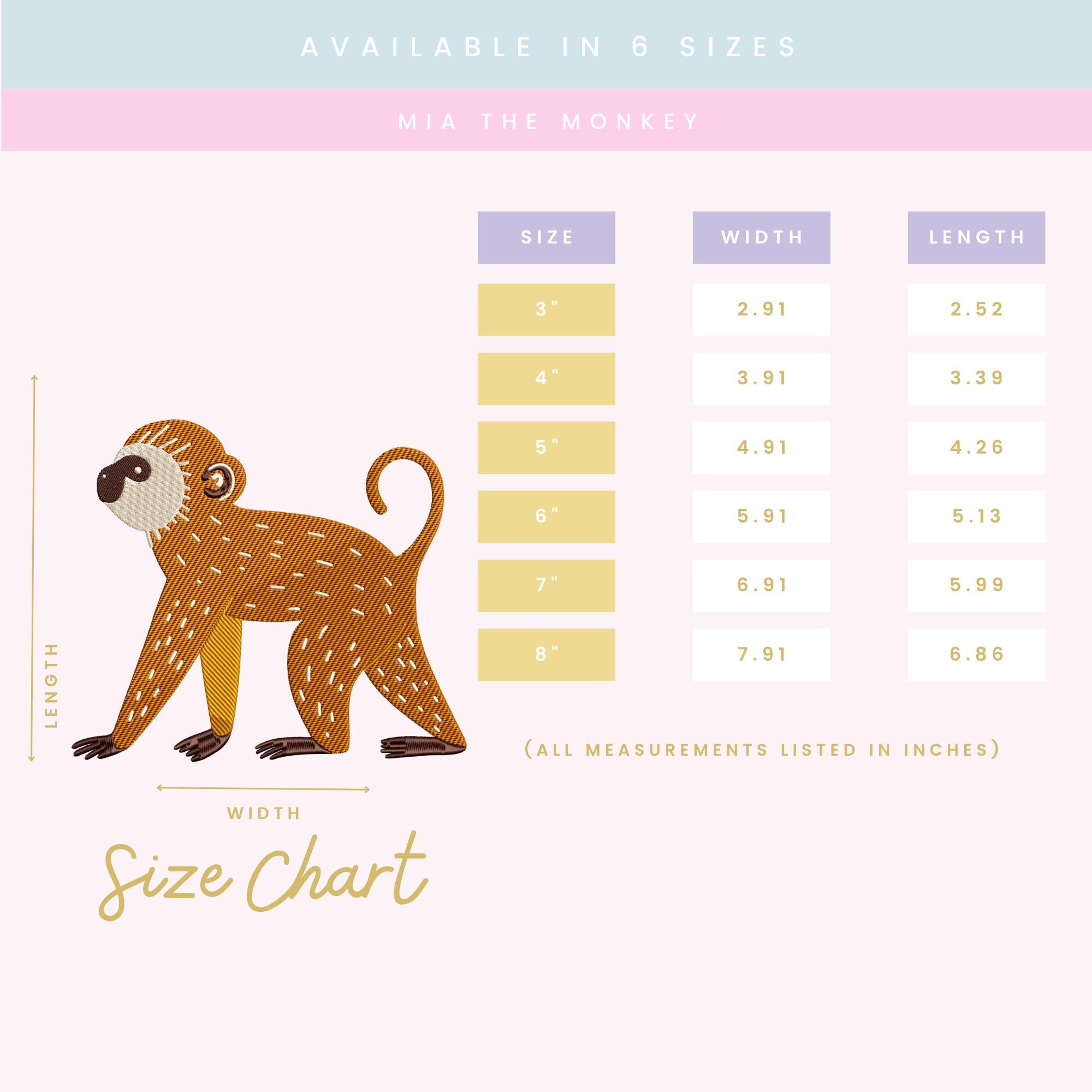 Mia the Monkey – Machine Embroidery Design (6 Sizes Included!) Jungle Monkey Stitch File • Animal Embroidery Design • Instant Download