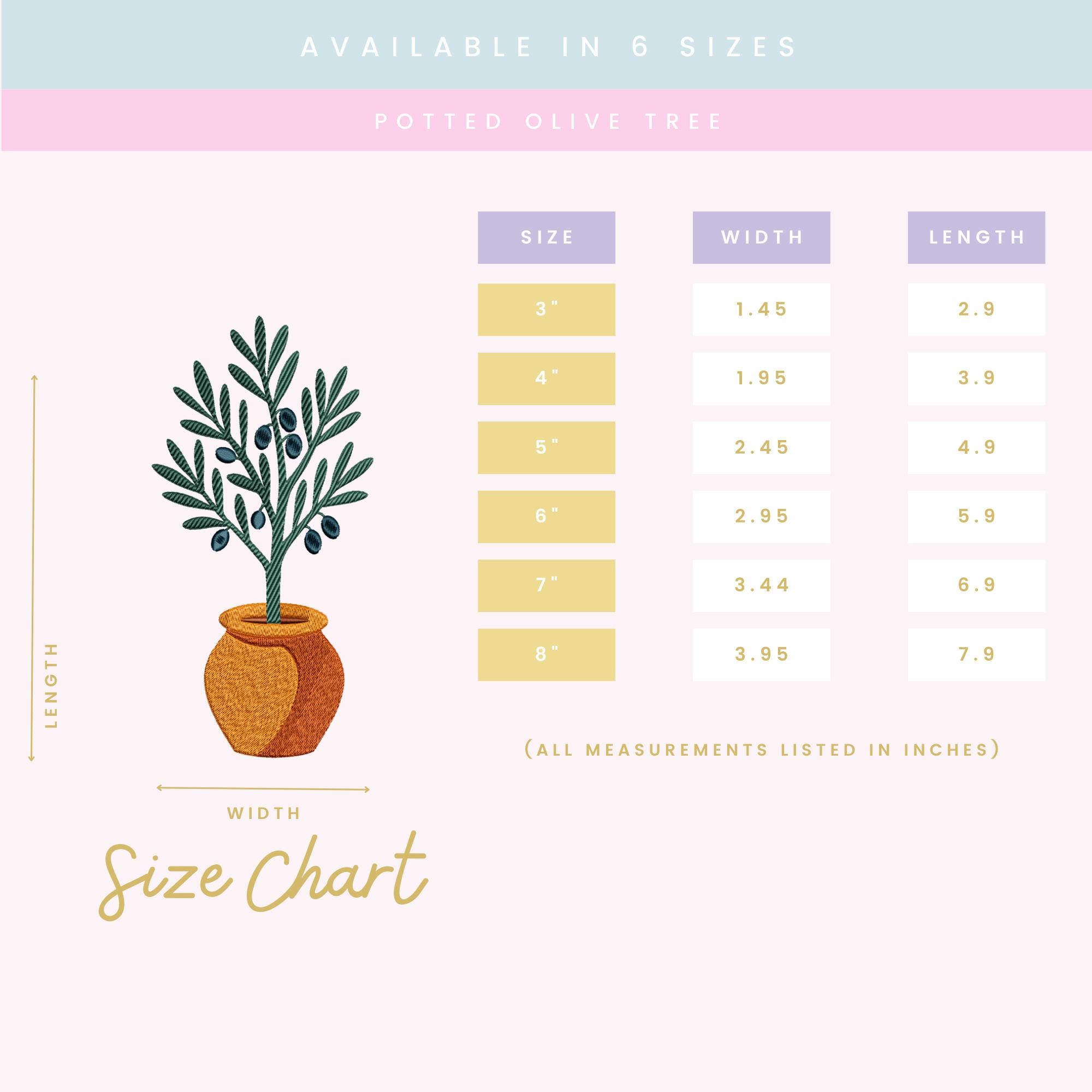 A ZIP file containing 6 sizes of the Potted Olive Tree design: