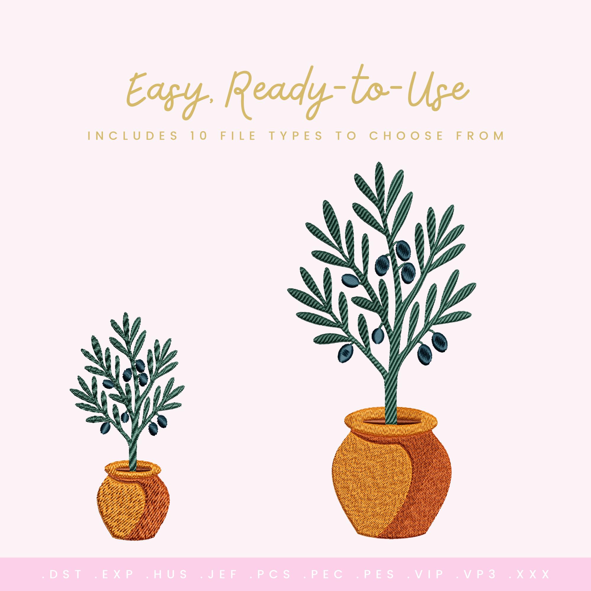 Potted Olive Tree – Machine Embroidery Design (Instant Download!)