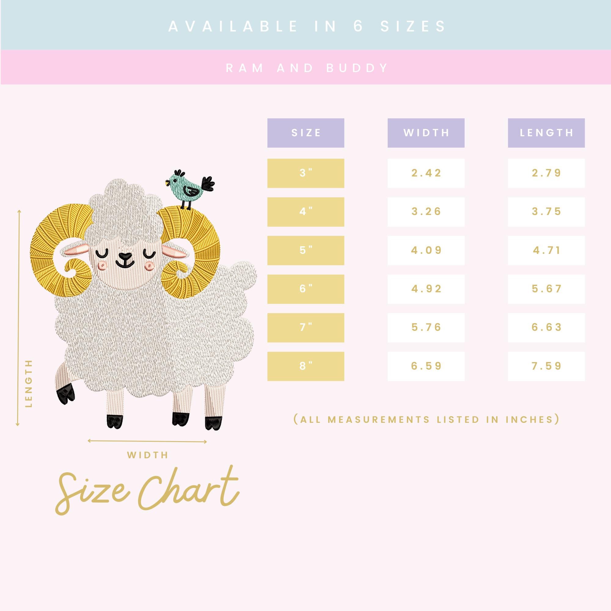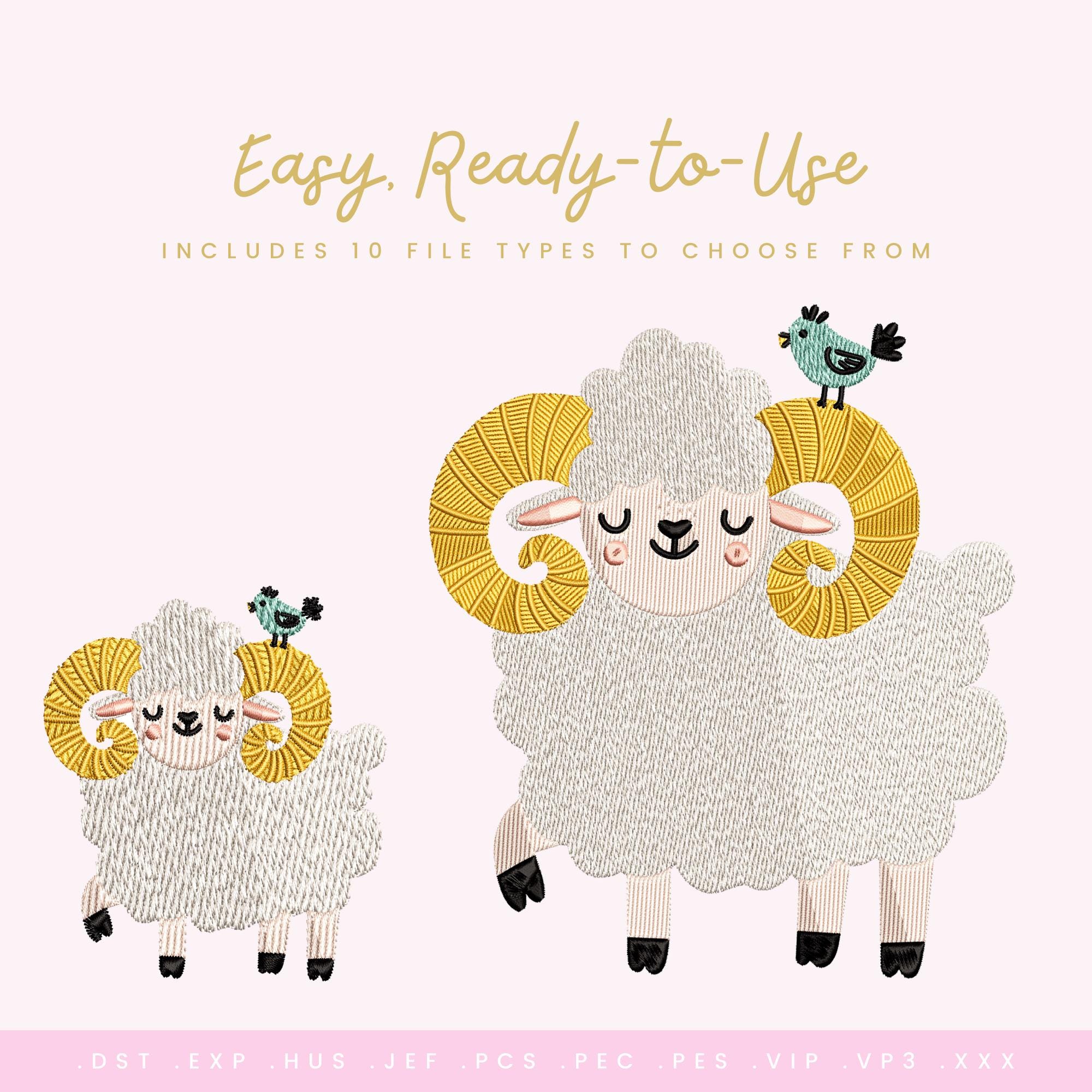Ram and Buddy – Machine Embroidery Design (6 Sizes Included!) Cute Ram Embroidery File • Sheep Animal Stitch • Farm Nursery Embroidery • Instant Download