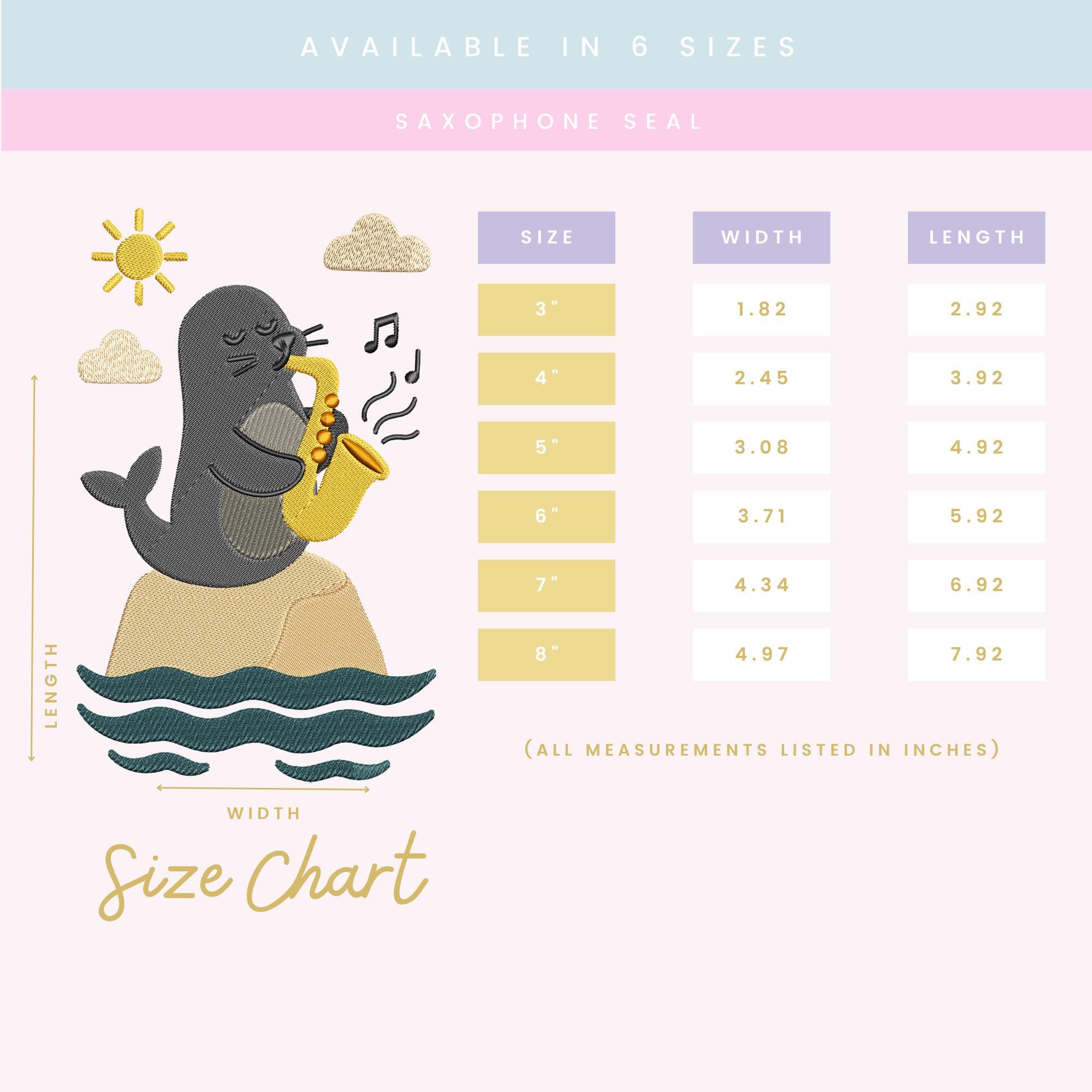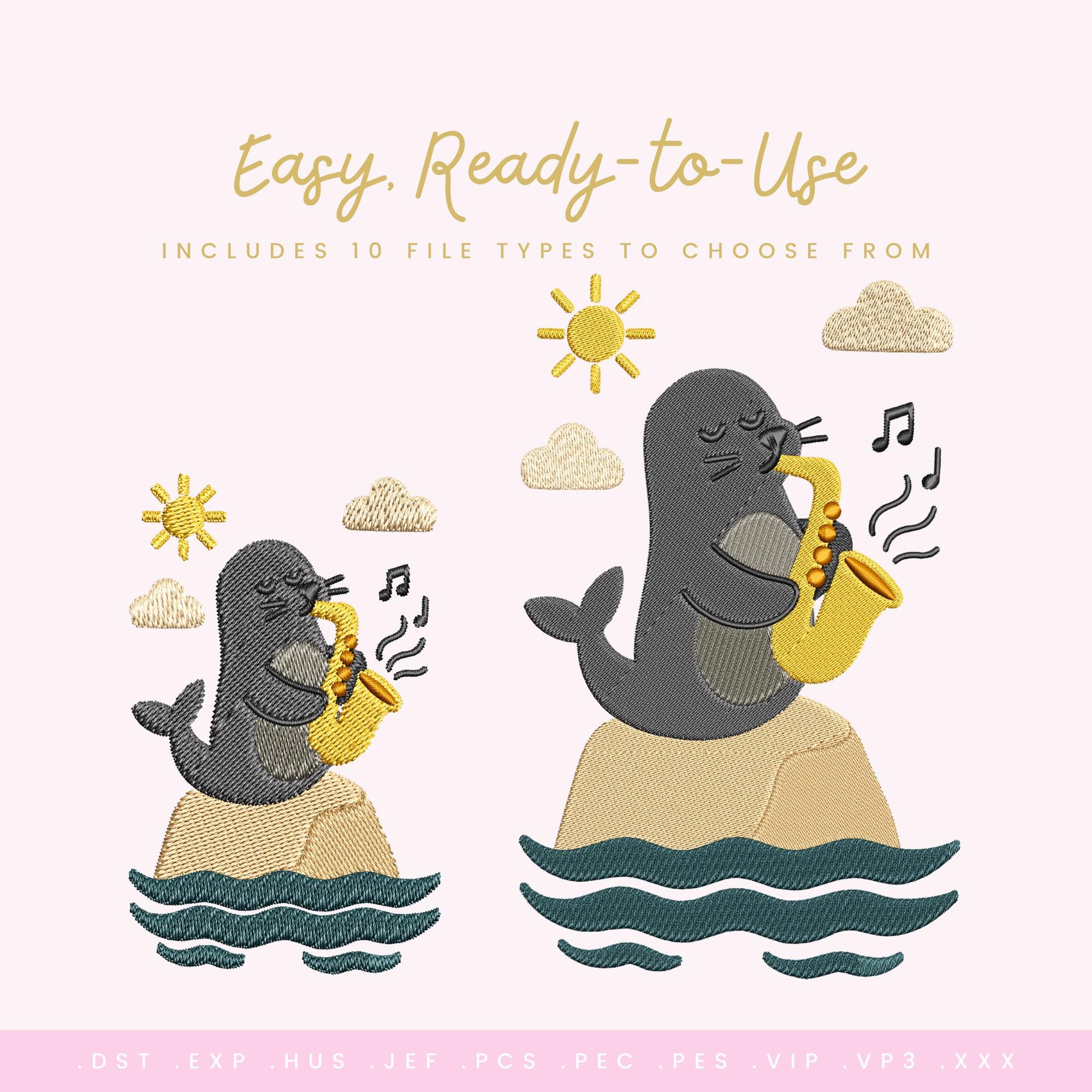 Saxophone Seal – Machine Embroidery Design (6 Sizes Included!) Musical Seal Embroidery File • Jazz Seal Stitch • Cute Ocean Animal Embroidery • Instant Download