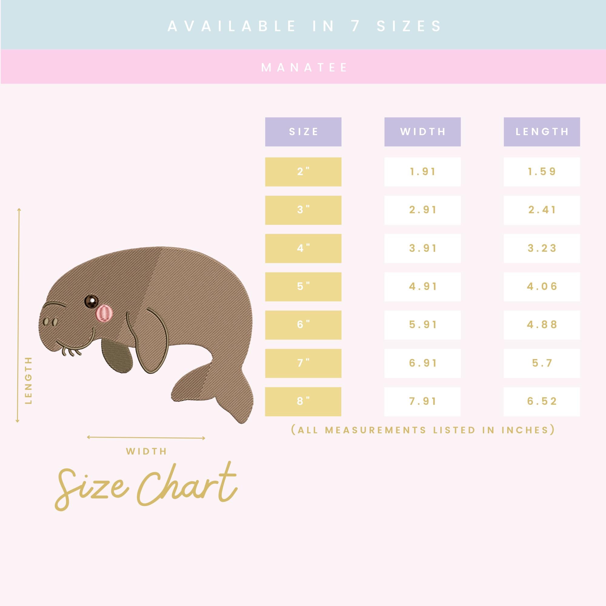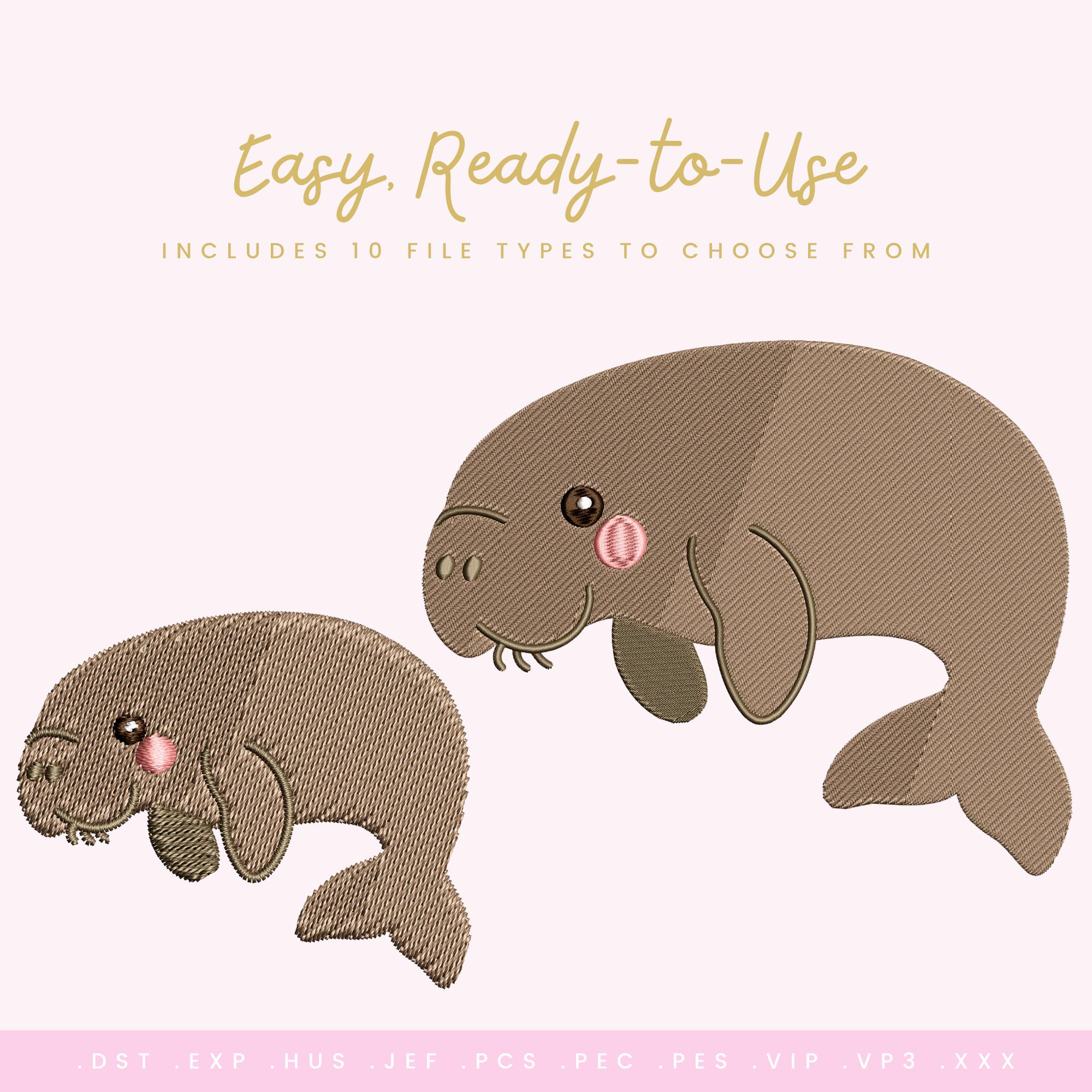 Manatee Embroidery Design (7 Sizes Included) Cute Sea Animal Embroidery File • Ocean Animal Design • Baby Embroidery • Machine Embroidery • Instant Download