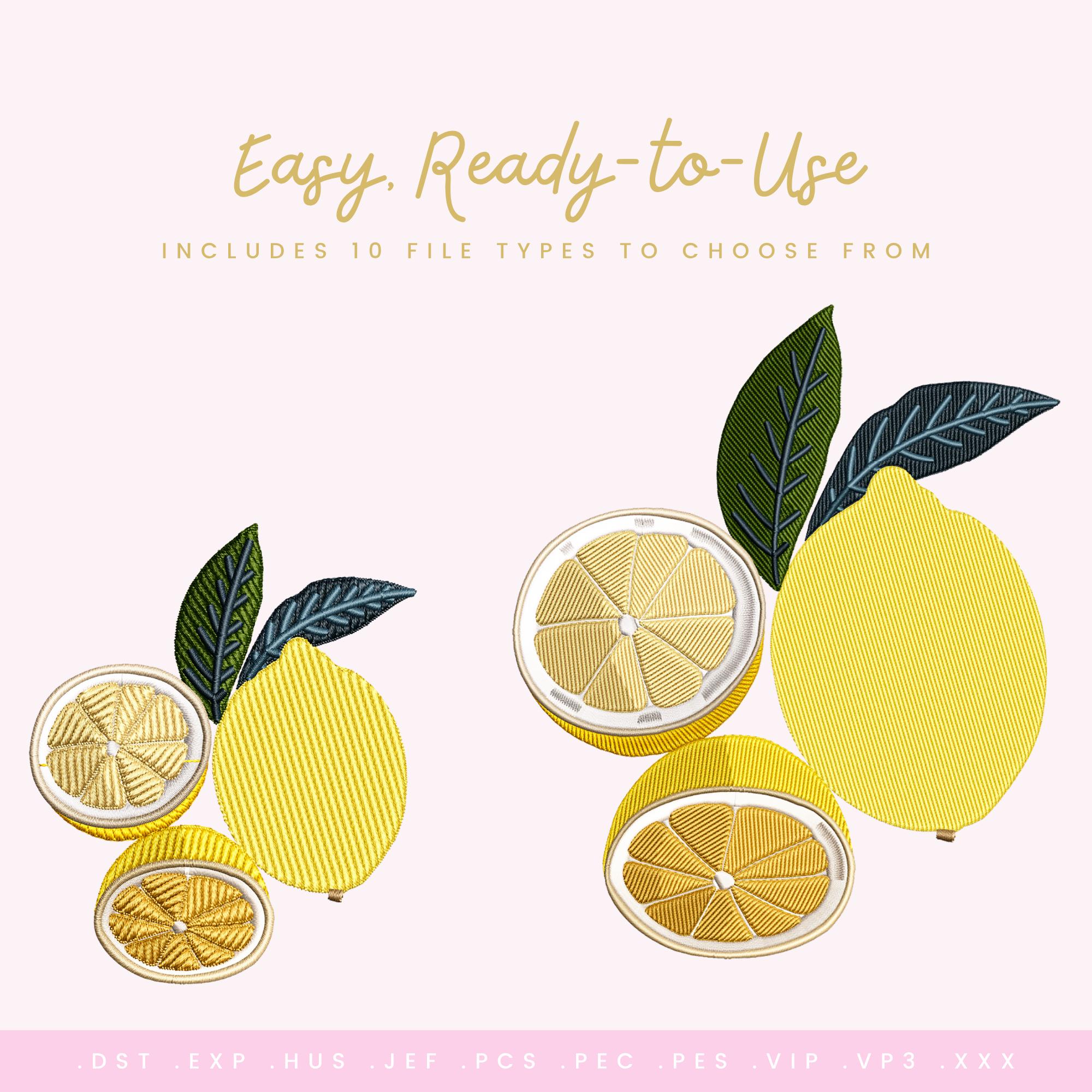 Lemon Embroidery Design Bundle (6 Sizes Included) Citrus Embroidery File • Lemon Slice Design • Kitchen Embroidery • Summer Embroidery • Instant Download