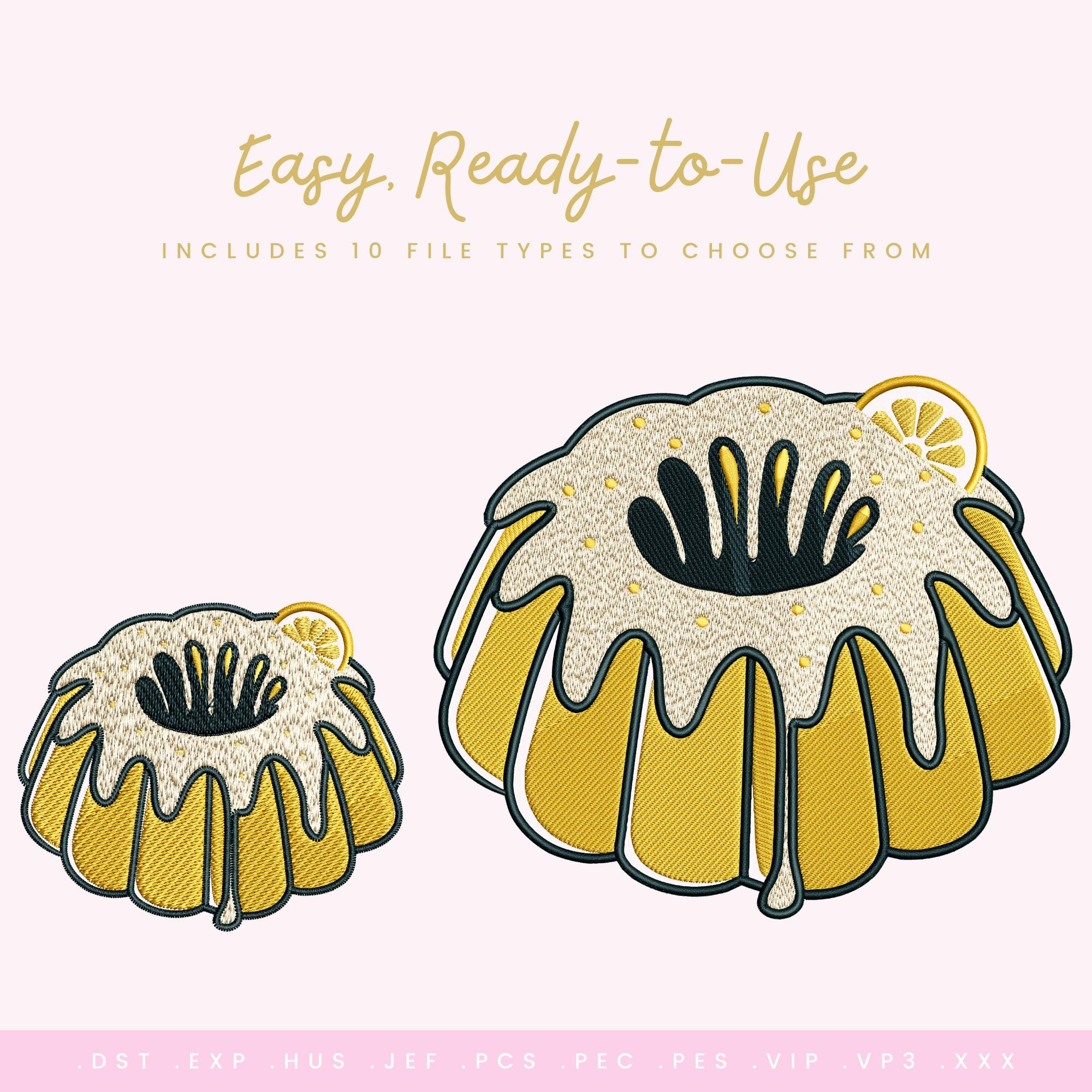Lemon Pound Cake Embroidery Design (6 Sizes Included) Bundt Cake Embroidery File • Dessert Embroidery • Kitchen Embroidery • Lemon Cake Design • PES