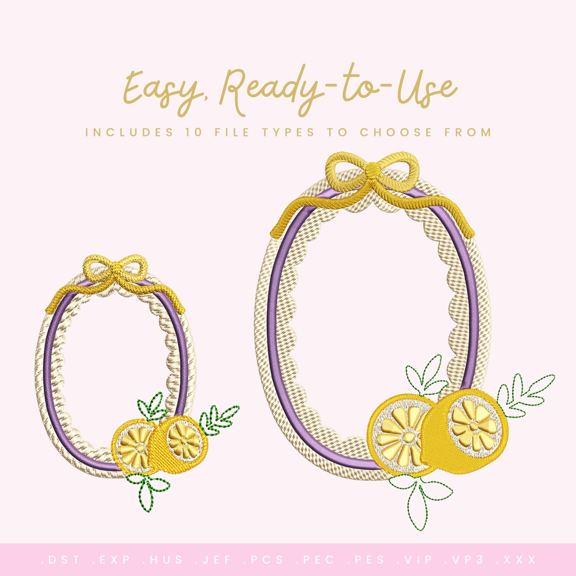 Lemon Monogram Oval Frame Embroidery Design (Instant Download!)
